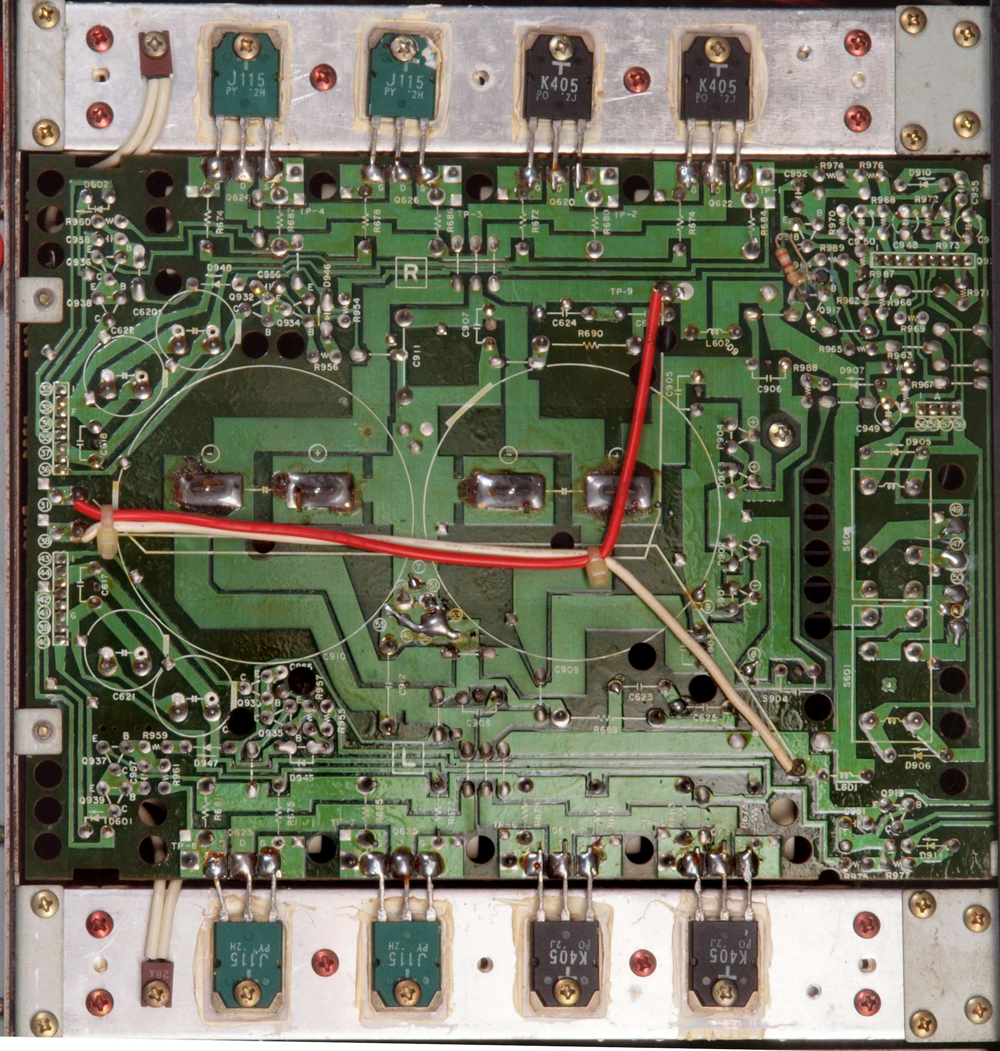 C92. 修理後 終段基板。 電解コンデンサー7個、リレー2個交換。