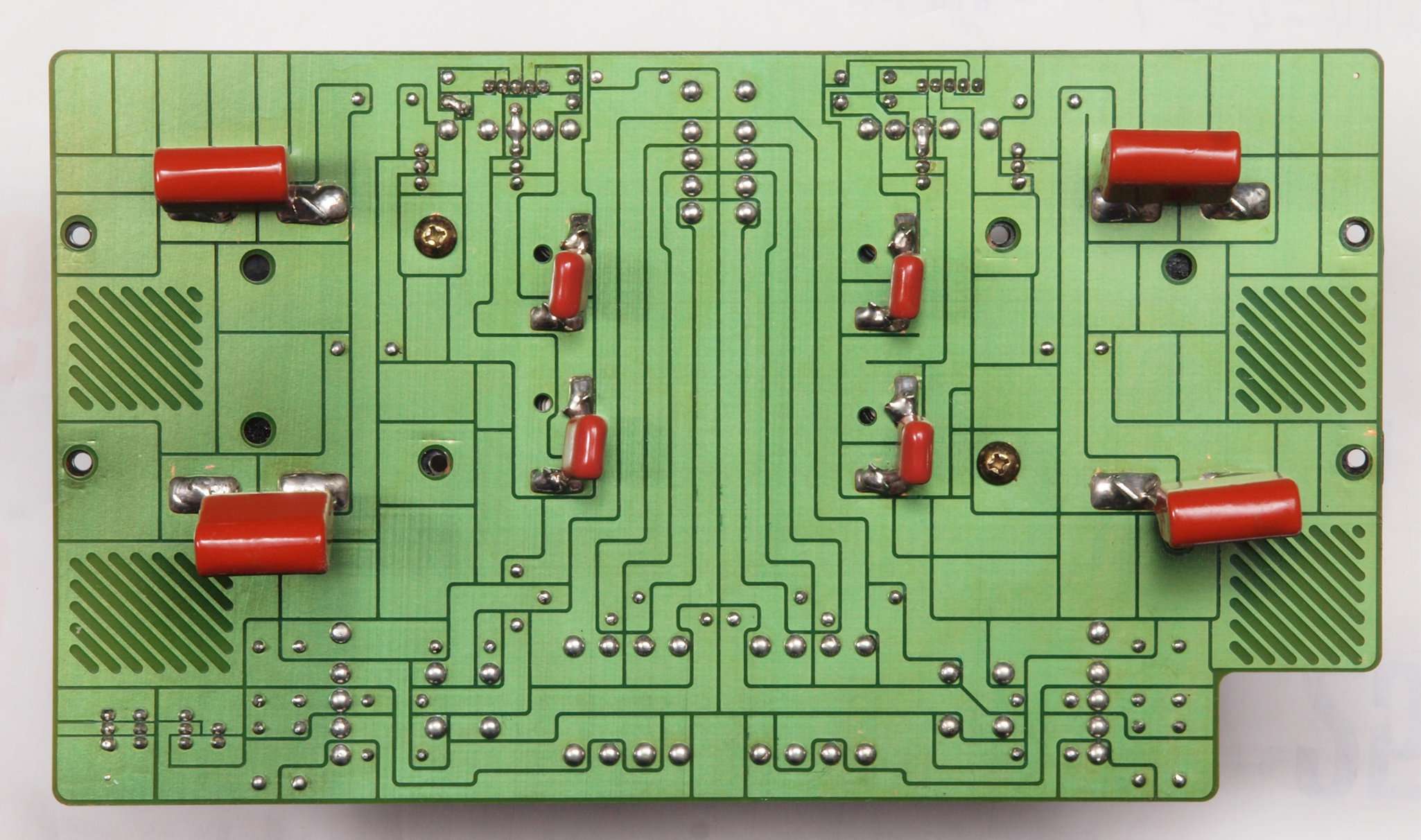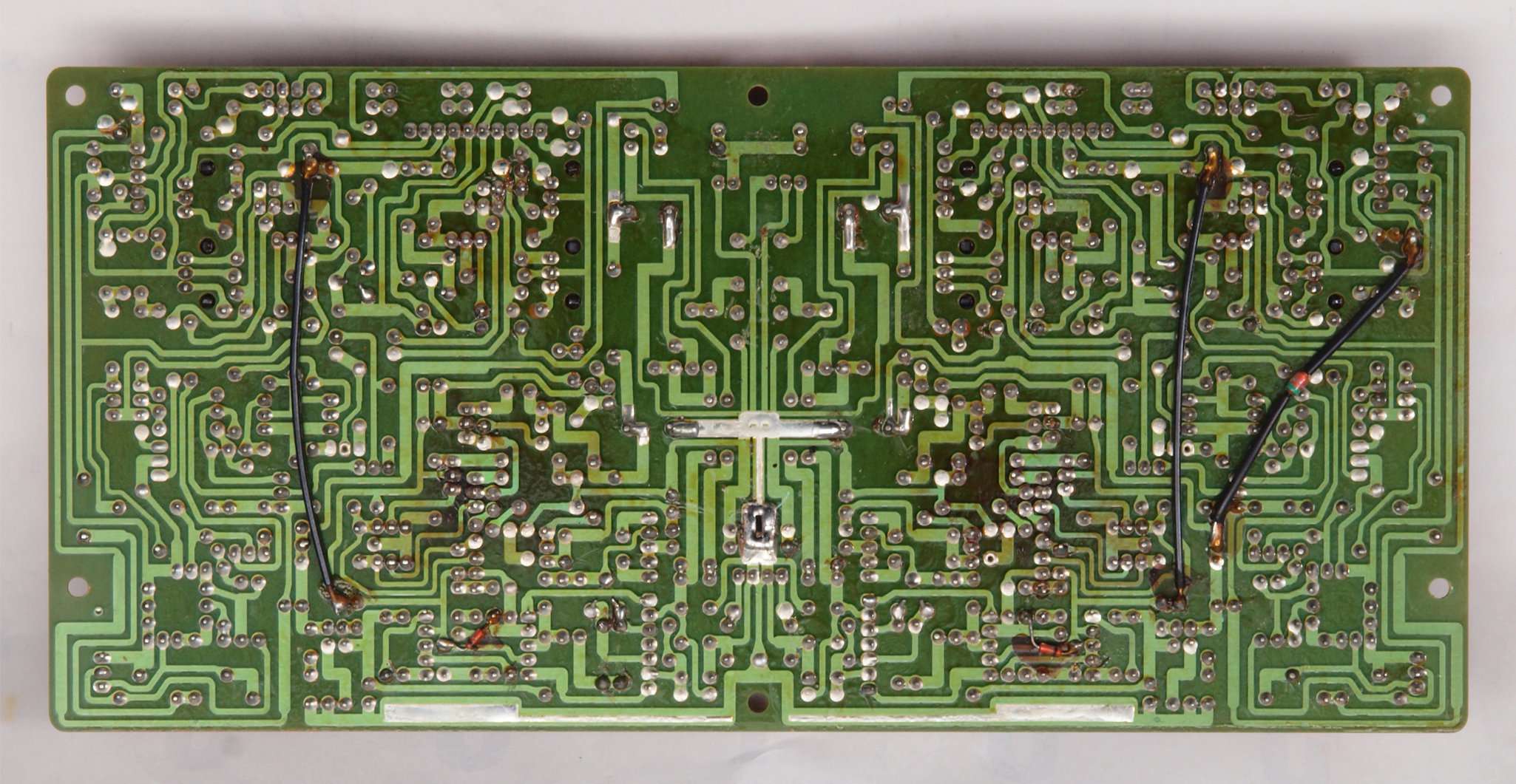 | C54. 修理(半田補正)後 EQ−AMP(equalize-amplifier)基板裏。 コンデンサー6個追加。全ての半田をやり直す。 | ||||||||||||||||||||||||||||||||||||||||||||||||