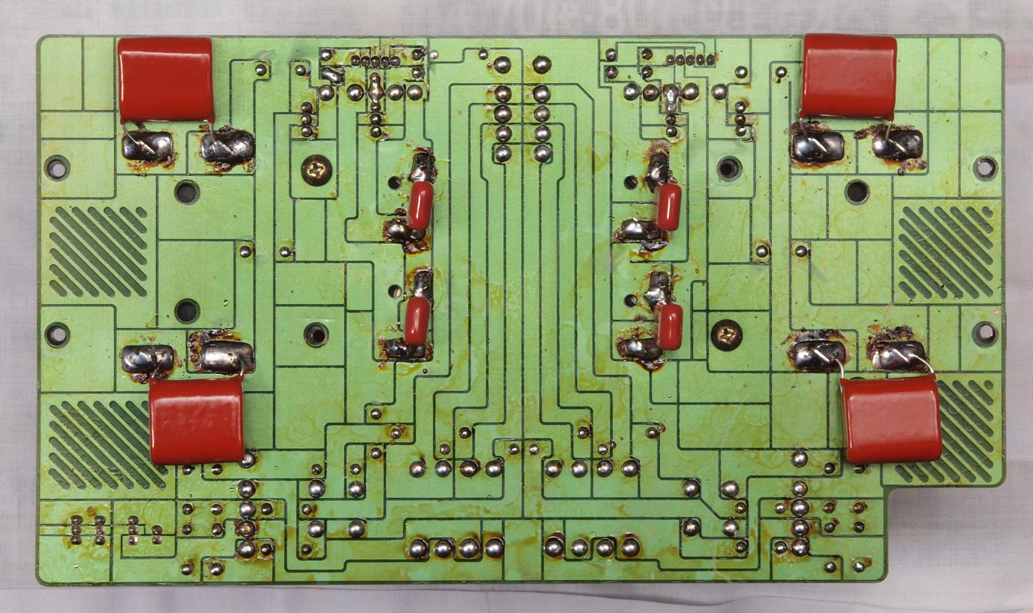 | C23. 修理前 終段・プロテクト基板裏。 | ||||||||||||||||||||||||||||||||||||||||||||||||