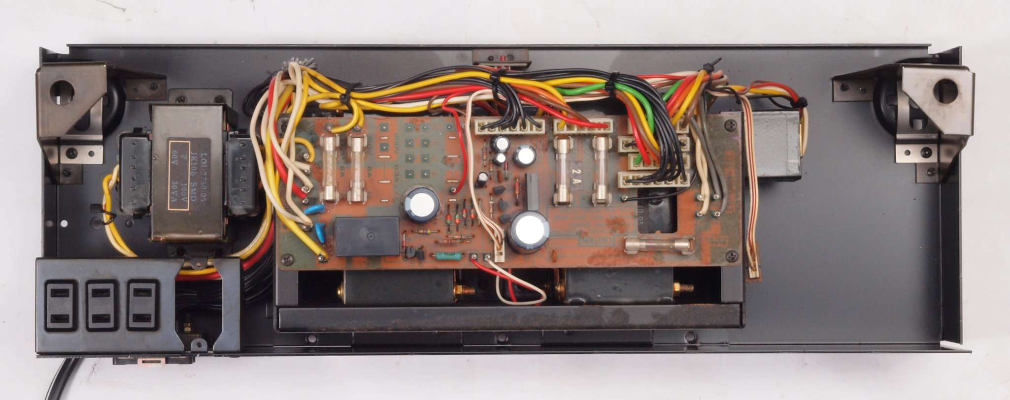 | P. 電源修理状況。 画像をクリックすると、大きく(横幅2050ドット)表示されます。 P11. 修理前 電源部。 上から見る。 |