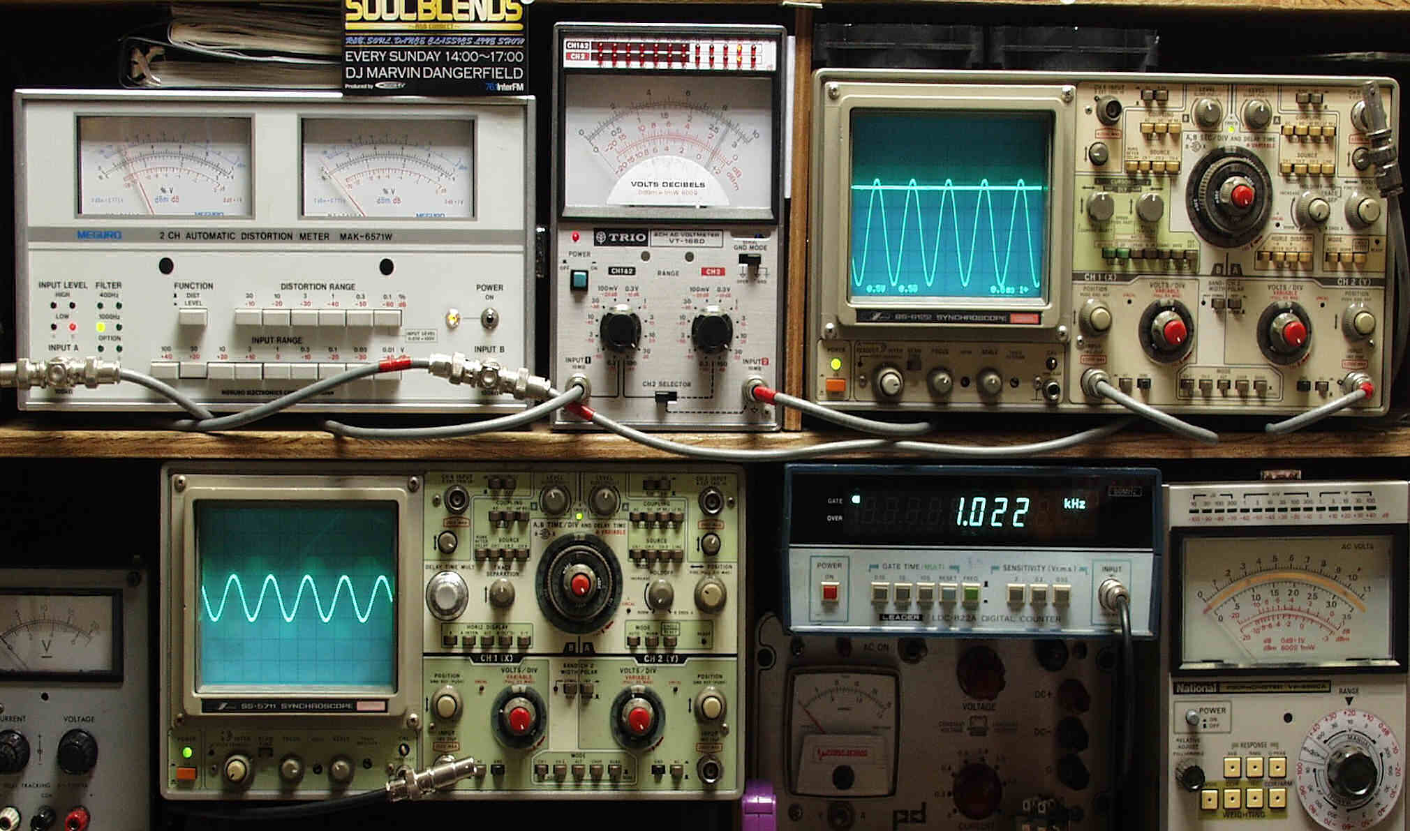 下左オーディオ発振器より400HZ・1KHZの信号を出す(歪み率=約0.003%)