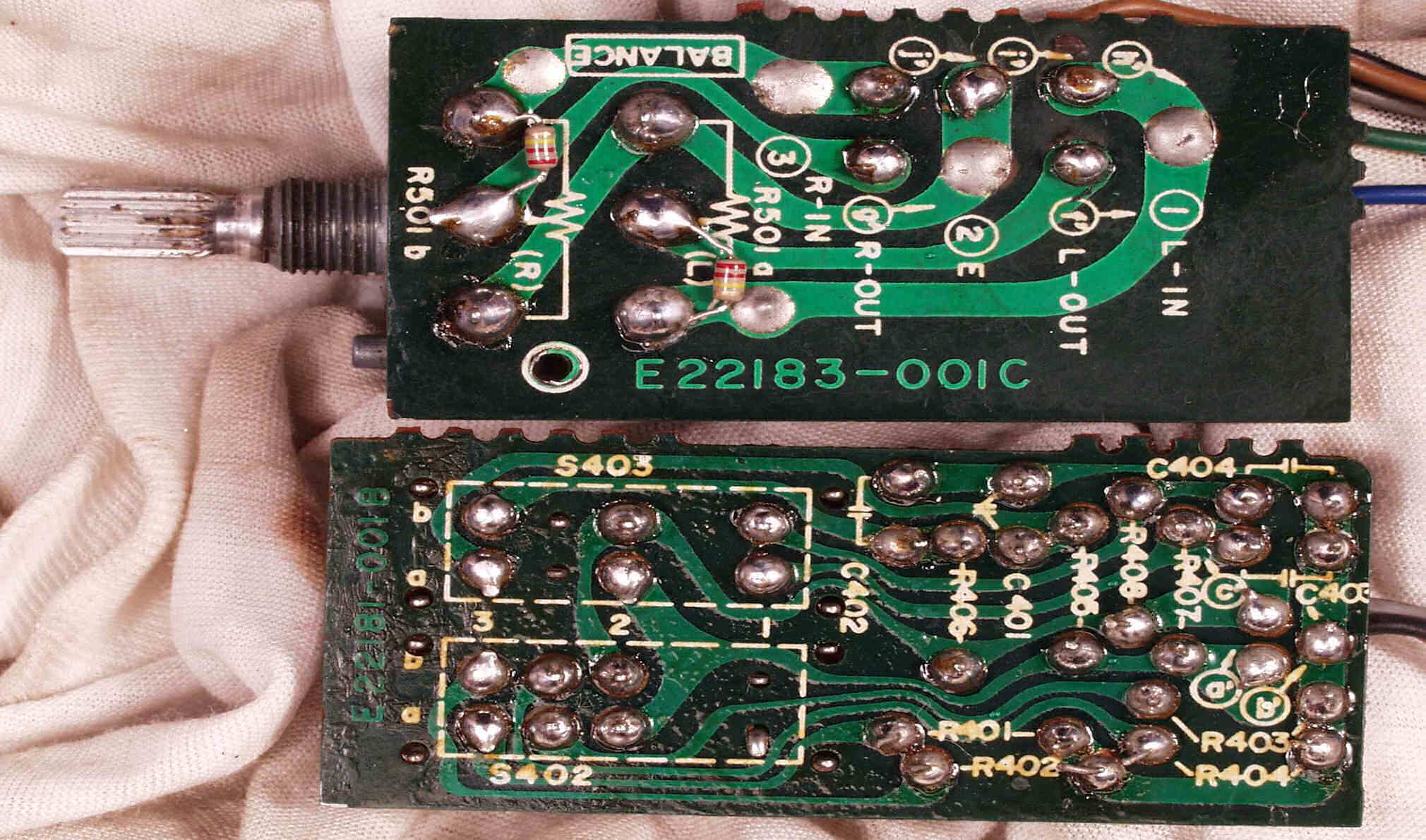 | C−5C. 修理前 Loudness+Muting基板裏 |