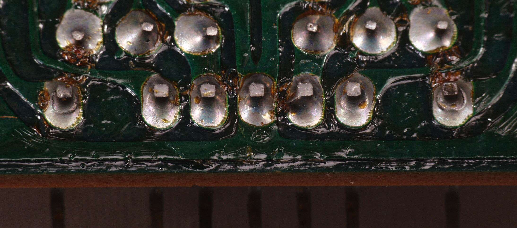 C4D. 修理(半田補正)後 AMP基板裏  全ての半田をやり修す+余分なフラックスを取った後