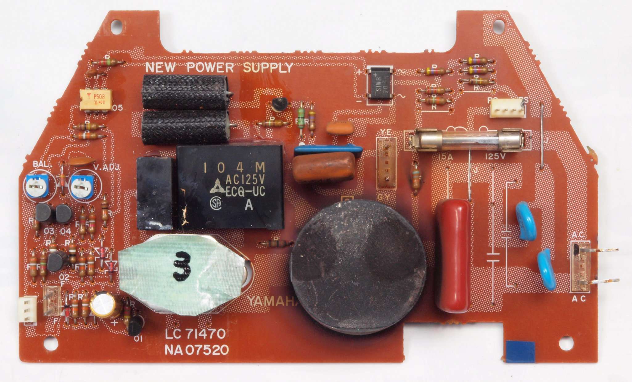 | C12. 修理後 電源基板。半固定VR2個、電解コンデンサー1個交換。 | ||||||||||||||||||||||||||||||