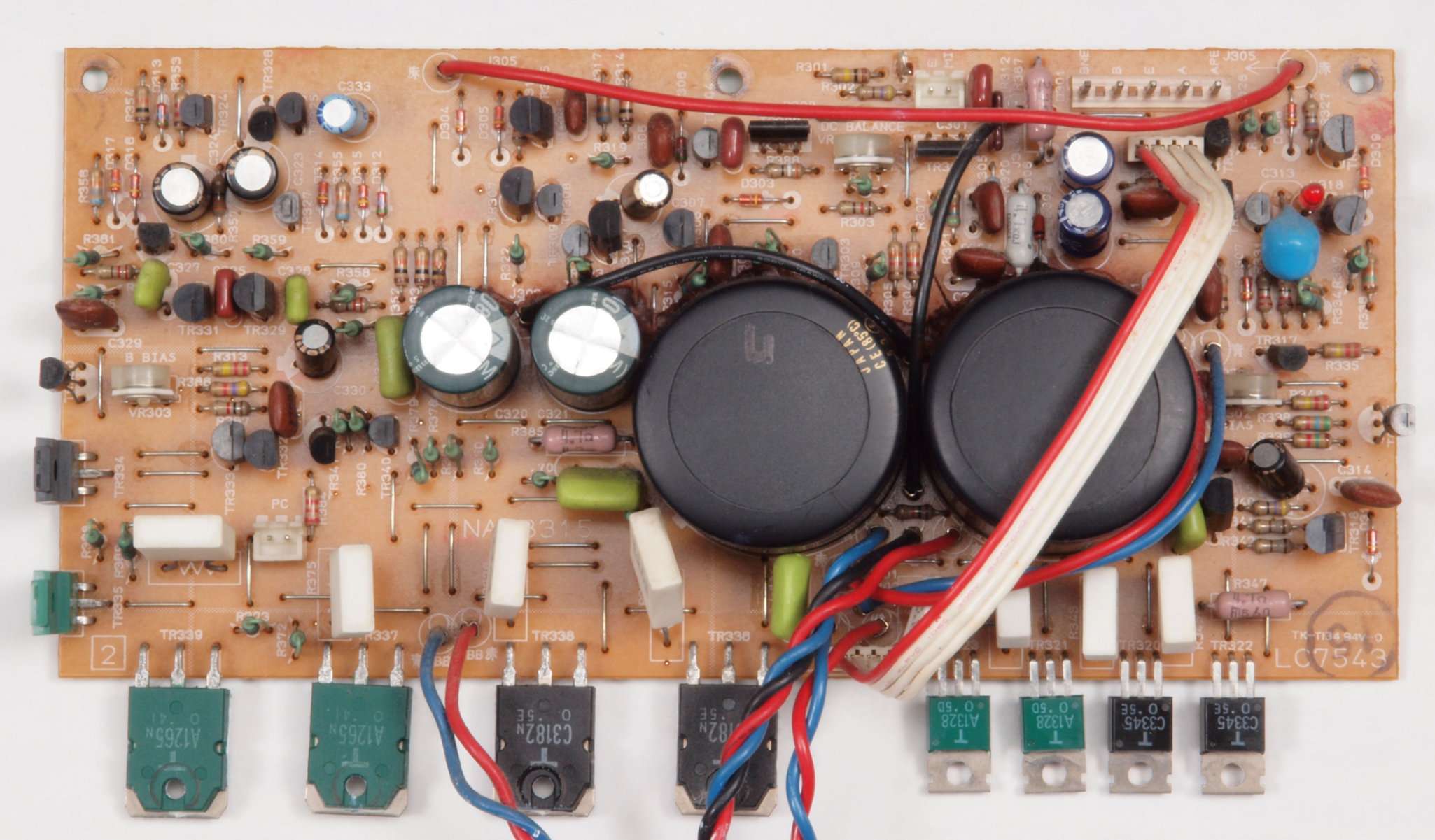 A−2000。 左右で終段TR(トランジスター)のメーカーが異なる