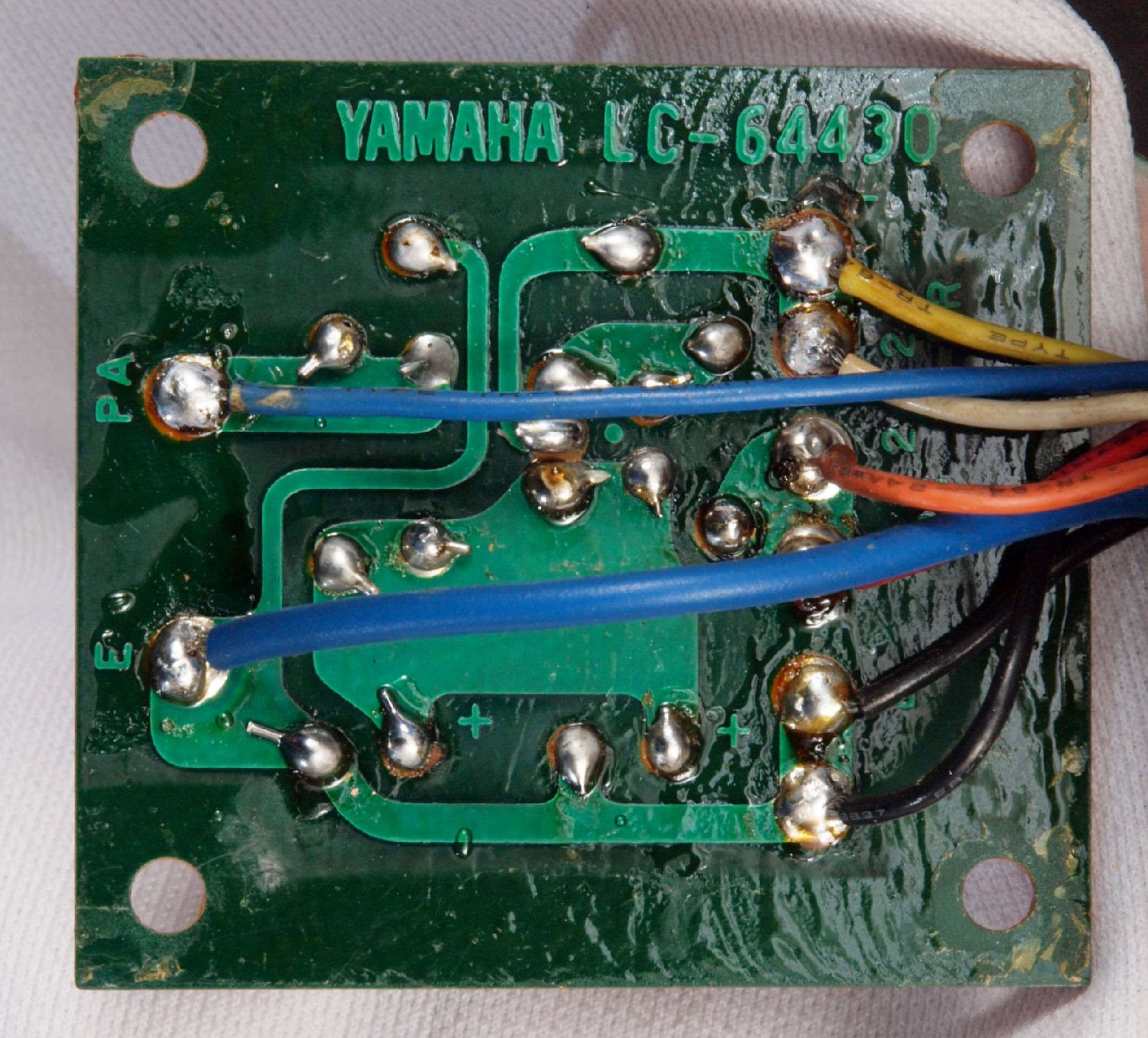 | CB4. 修理(半田補正)後 RCA端子基板裏、フイルムコンデンサー2個追加。 全ての半田をやり修す。 | ||||||||||||||||||||||||||||||||||||||||||||||||||||