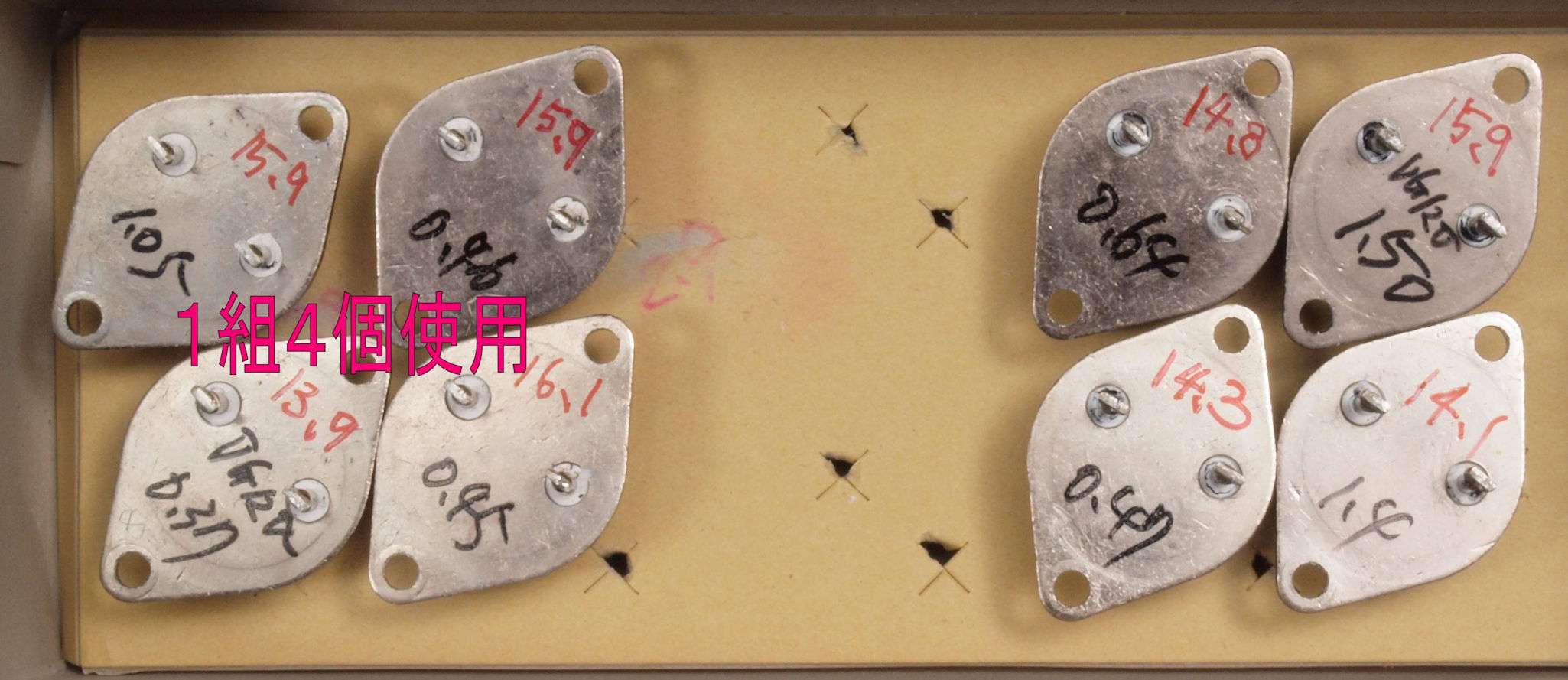 TR(トランジスター)=113個、 LED=3個、 ツェナーダイオード=7個、 ダイオード=64個