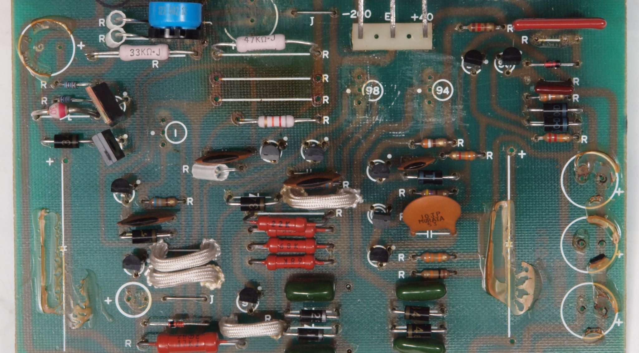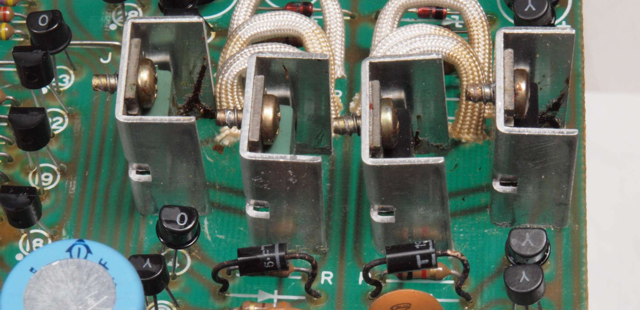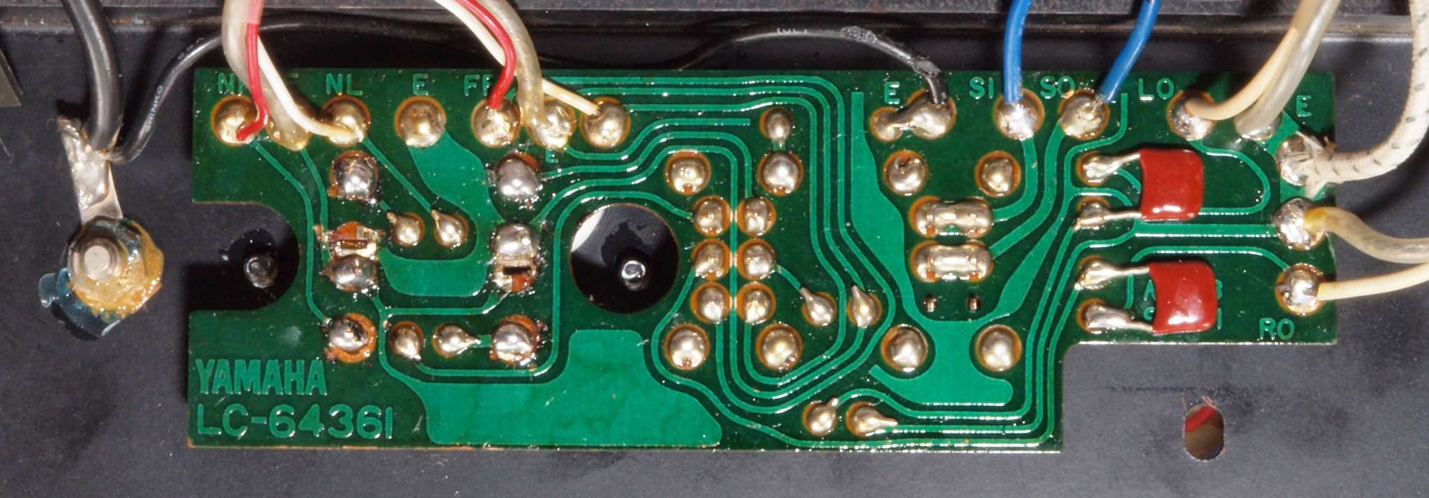 CL1. 修理前  SIT(静電誘導型トランジスター)用ブロック電解コンデンサー下周り。