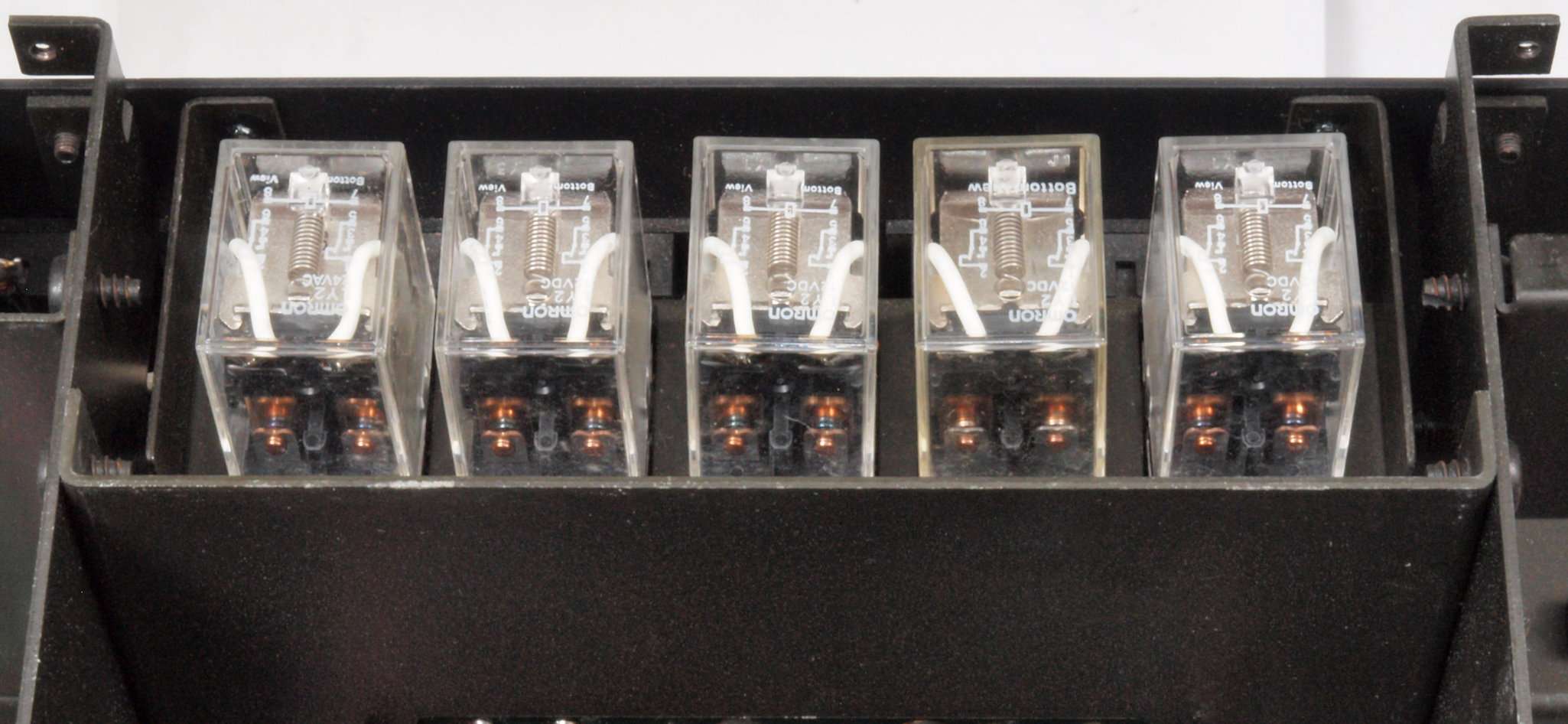 A25. 点検中、 上蓋、左右パネルを取り上から見る。フイルター基板カードエッジコネクター絶縁不良、 接点復活剤の塗布により炭化(接点の黒い所が酸化されて入る。
