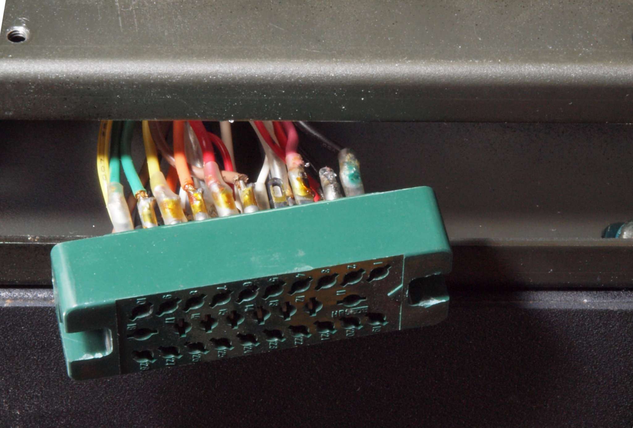 CK4. 修理中 前パネルコネクター端子の配線点検、反対側。