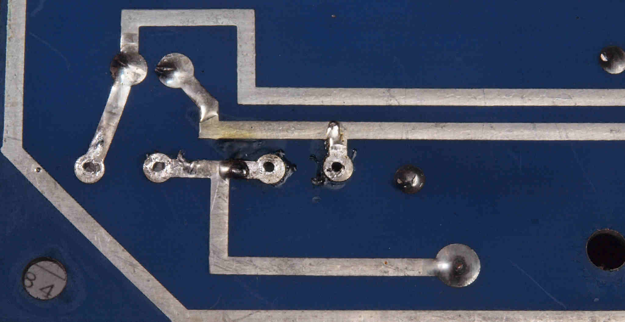 | C1D2. 修理中 終段6LF6基板裏の銅箔はく離。 裏の様子。 | ||||||||||||||||||||||