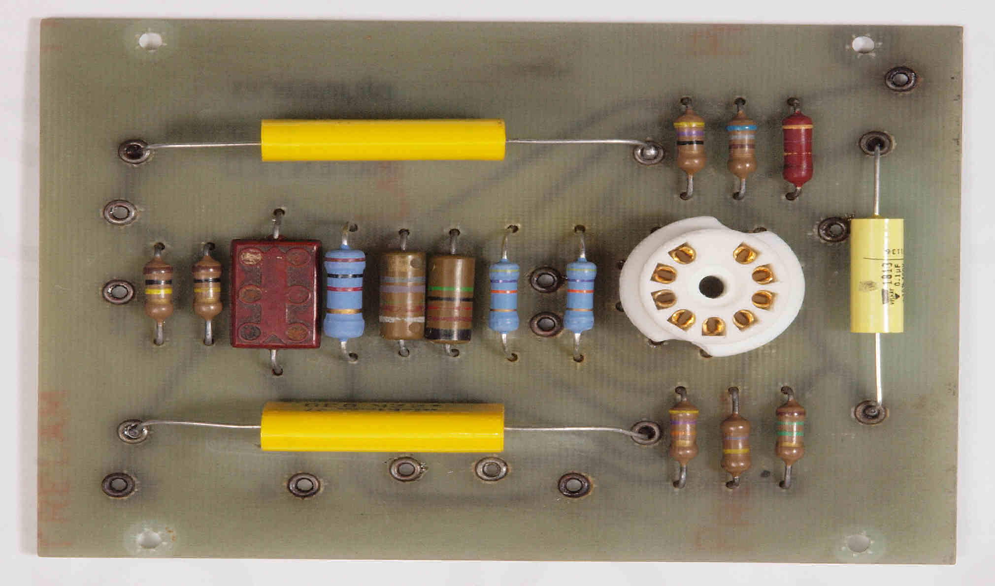 | C. 修理状況。画像をクリックすると、大きく(横幅2050ドット)表示されます。 C11. 修理前 前段6AN8基板。 |