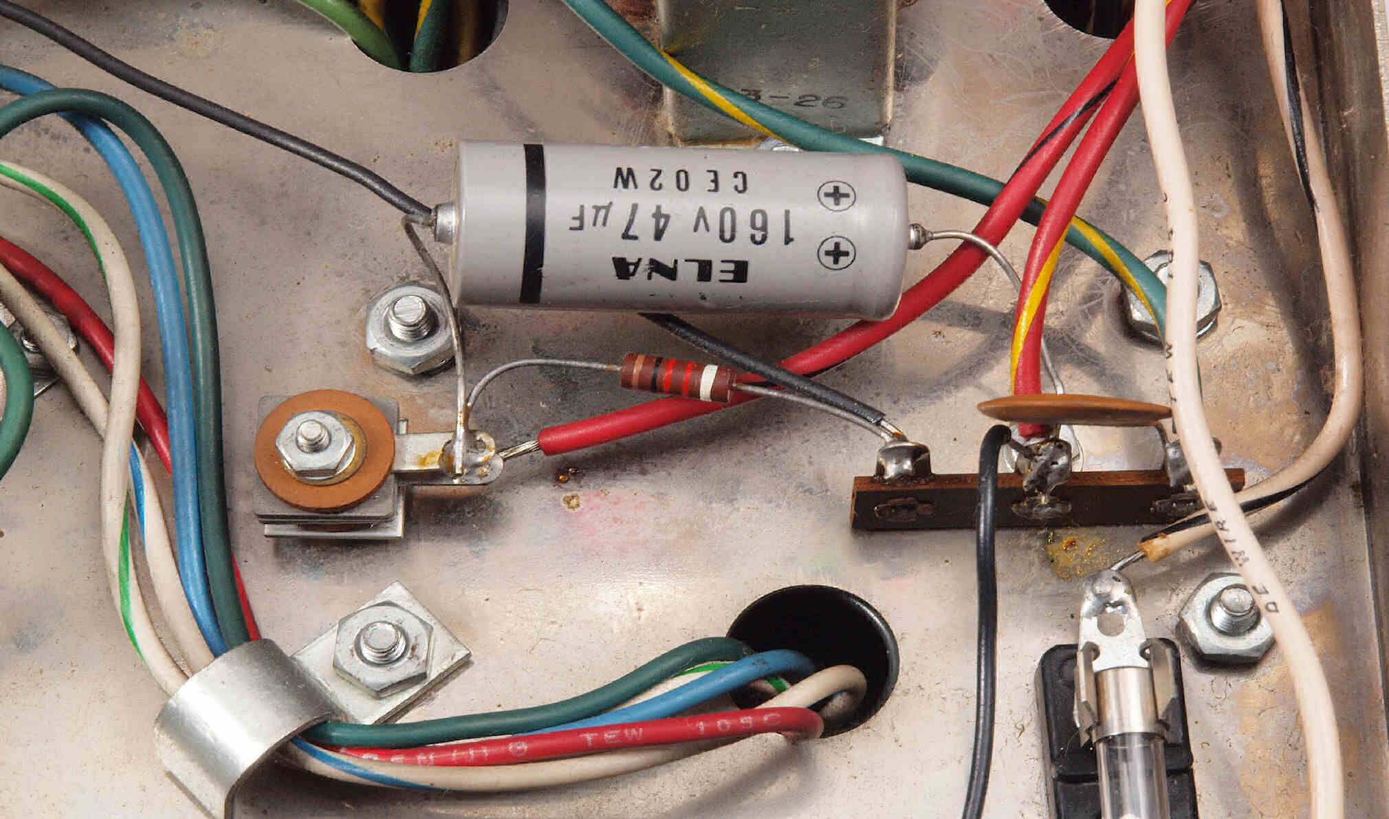 C21. 修理前 整流管5AR4ソケット付近。