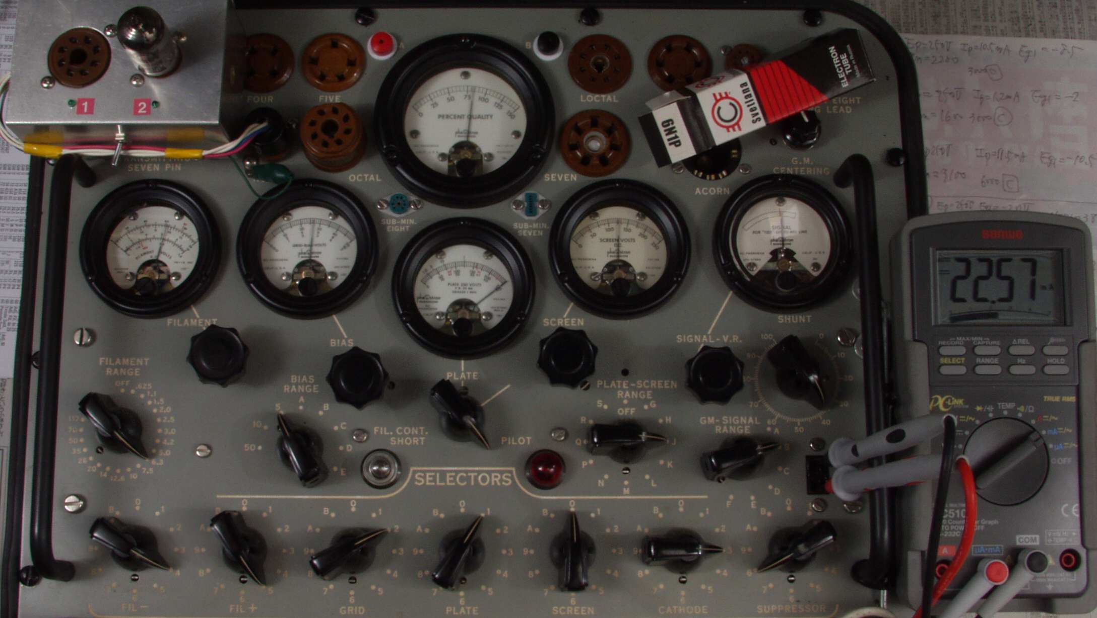 手持ち「6N1P」1本目ユニット1。 Gm=8200μmho、IP=22.6mA。