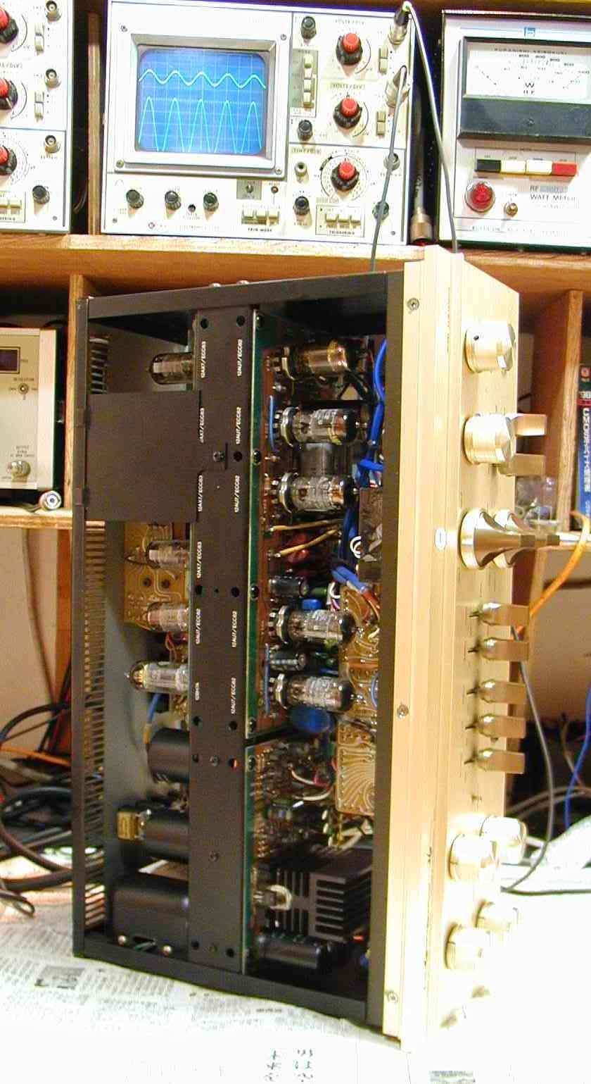 | A.修理前の状況 残留雑音が大きい パイロットランプ切れ B.症状、原因 RL共不特定の雑音が入る。 Lチャネルやや大きめ。 保存状態、使用場所が悪く、真空管とソケットの接触不良。 ソケットの交換が必要ですが、今回見送り。 メインVR、バランスVR急激な変化で、雑音が入る。 コンデンサーの絶縁不良が原因。 PUアンプのX7のエミ減による雑音。 C.修理状況 ソケットのハンダ付け手直し。 配線手直し、補強。 経年劣化による各部ハンダ補正。 D.使用部品 電球 1個。 E.修理費 10000円 通常修理。 S. LUX CL-36U の仕様(カタログ・マニアルより) |