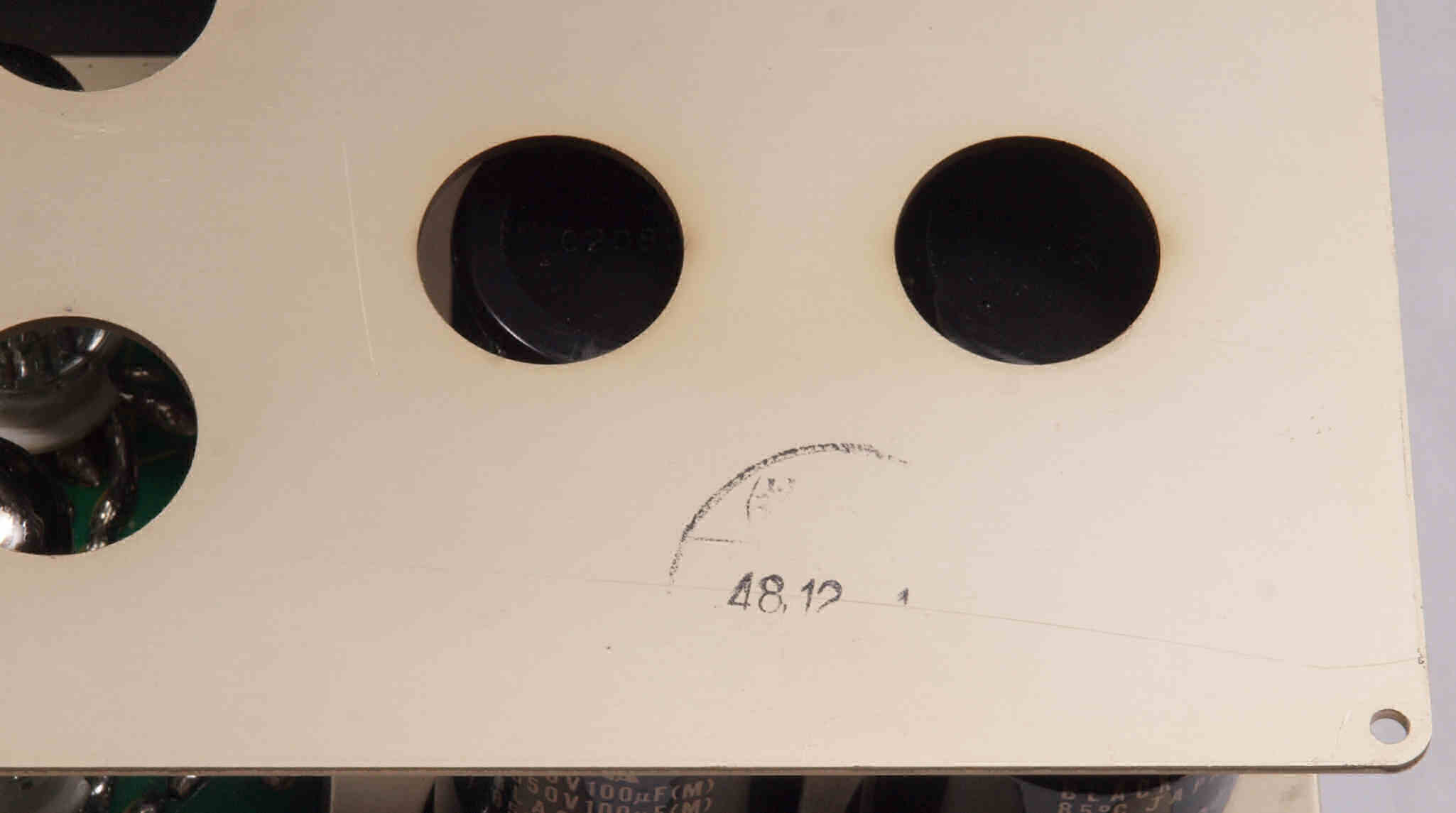 A33. 点検中 ドライブAMP基板カバー裏の製造年月日=48年(1973)12月、47年前!