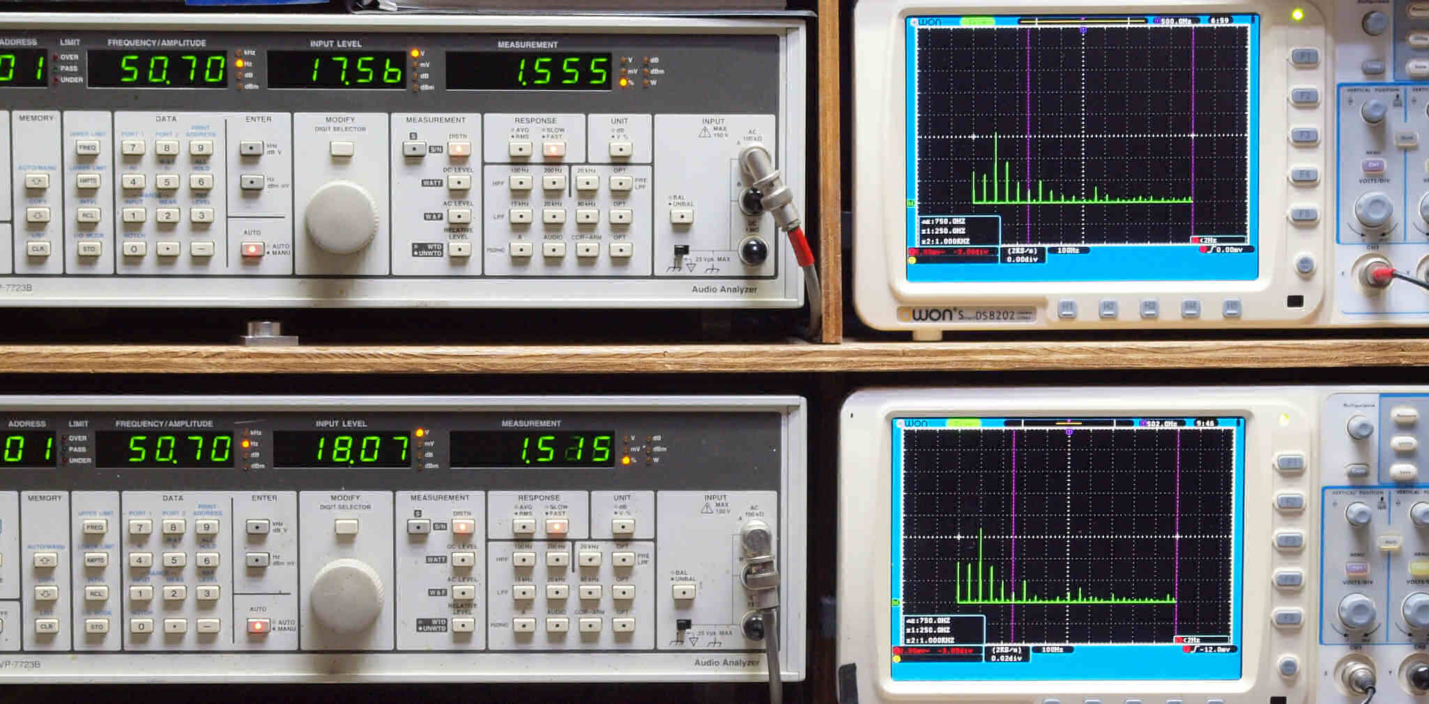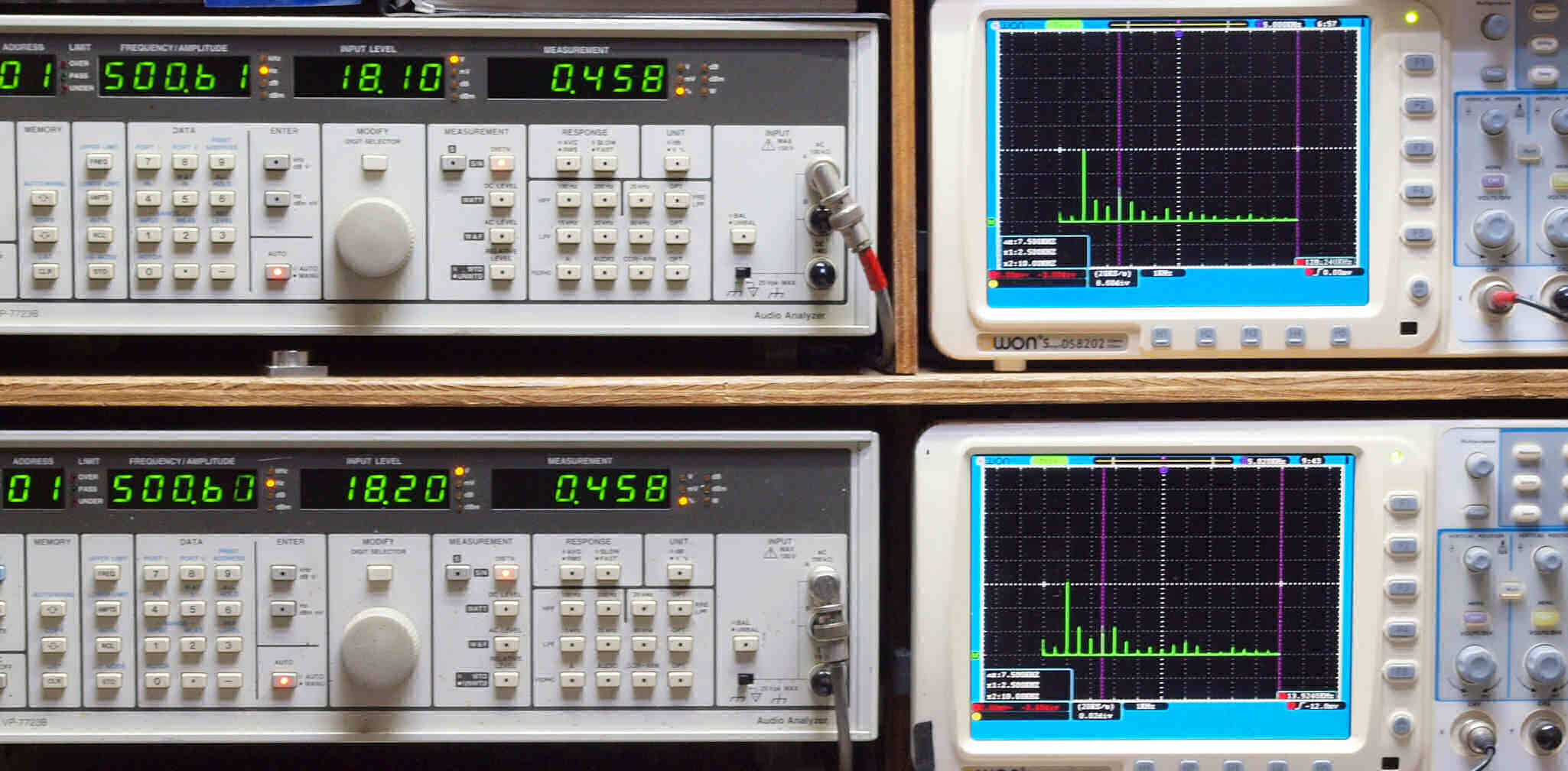 よって、ダイアル設定出力レベルより低くなります。測定機器の仕様や整備の様子はこちら、「VP−7723B」「VP−7201A」。 FFT画面の見方はこちら。