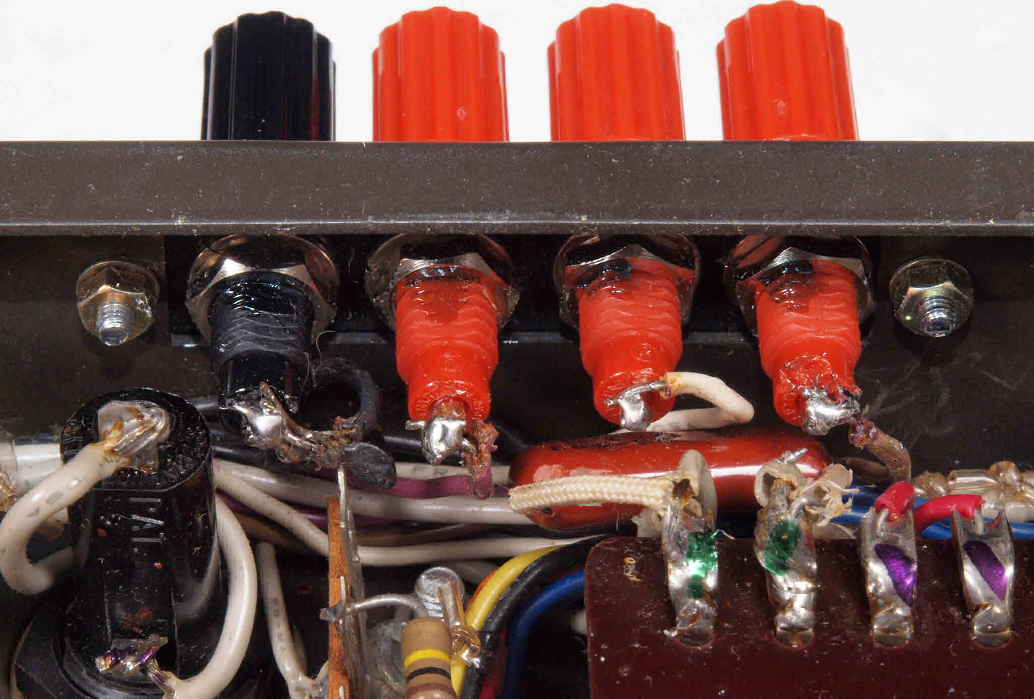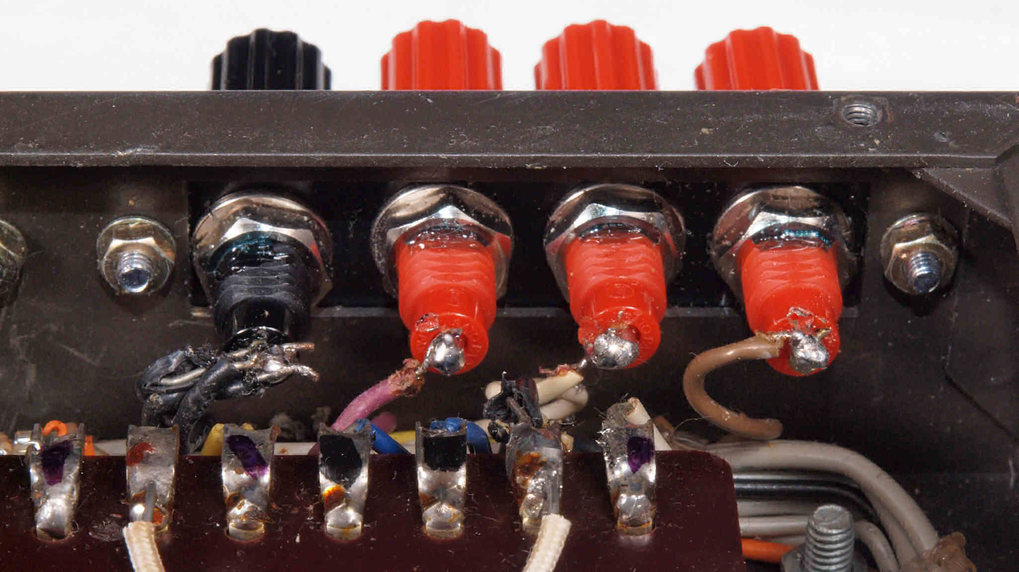 A135. 点検中 後から見る、入力RCA端子。 テフロン絶縁製に交換可能。