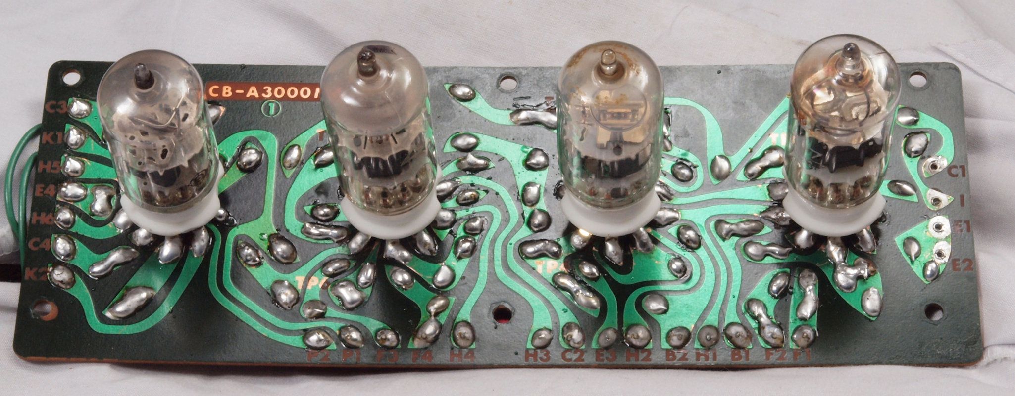 A31. 点検中 真空管。左から12AX7、12AU7、6240G、6240G、8045G、8045G