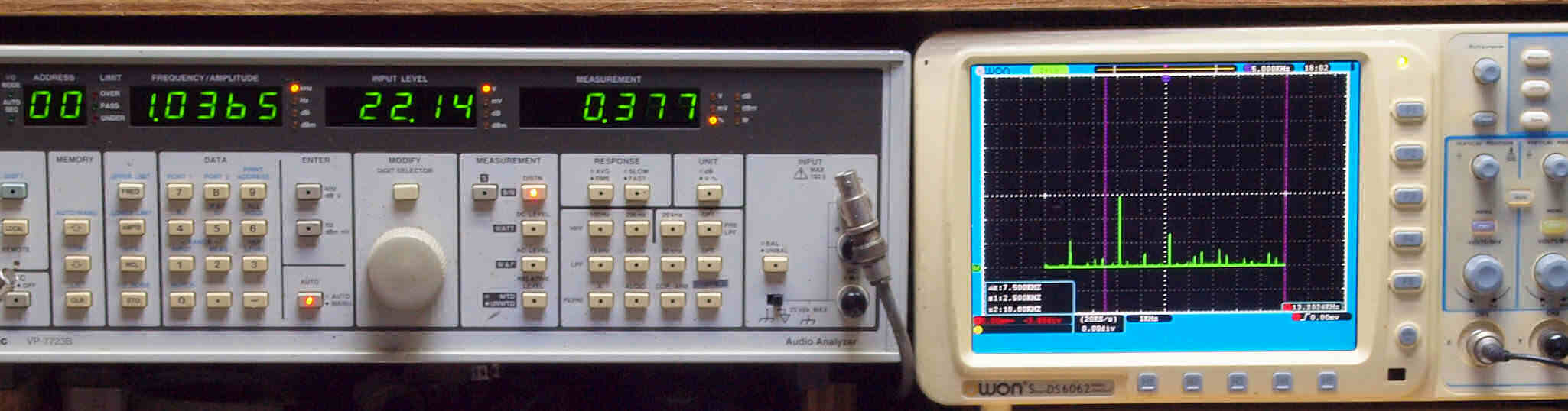 よって、ダイアル設定出力レベルより低くなります。測定機器の仕様や整備の様子はこちら、「VP−7723B」「VP−7201A」。 FFT画面の見方はこちら。