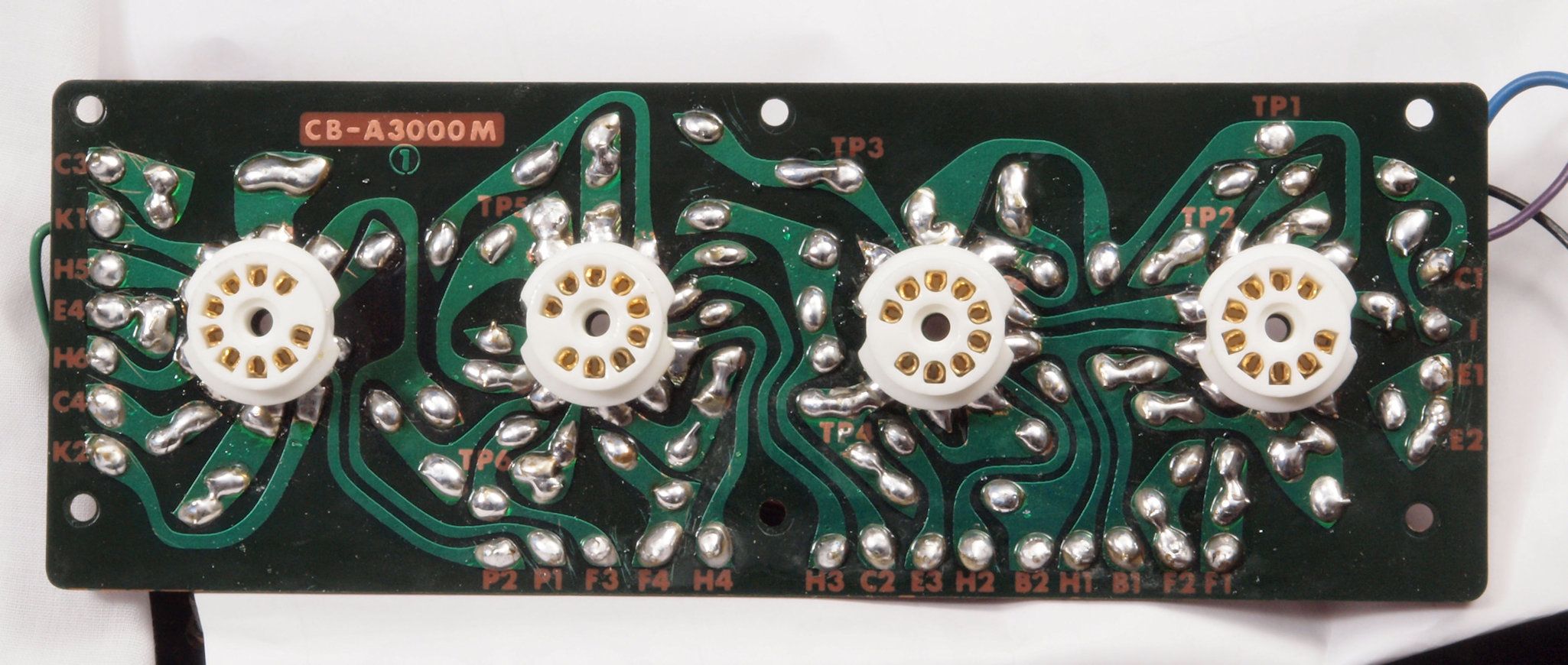 | C14. 修理後 前段AMP基板。 タイト絶縁9ピンMTソケット4個交換。 半田を全部やり直す。 | ||||||||||||||||||||||||