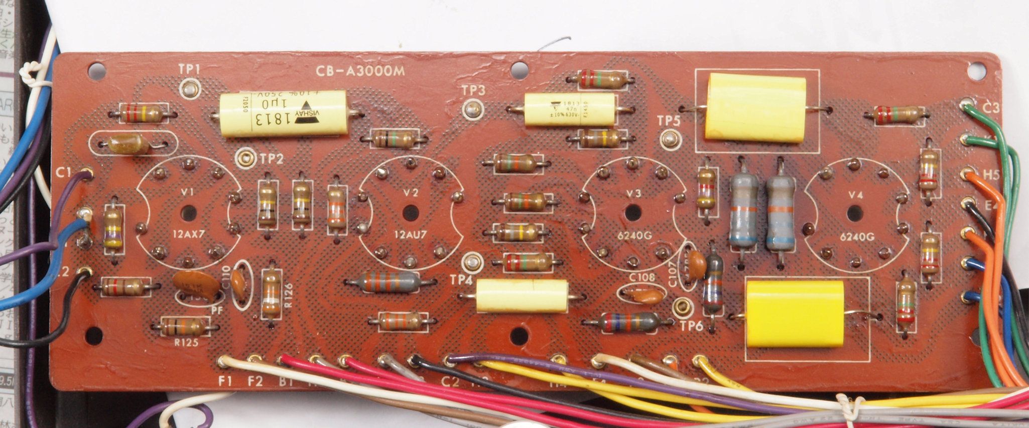 | C12. 修理中 前段AMP基板。真空管ソケットを外し、洗浄後。 | ||||||||||||||||||||||||