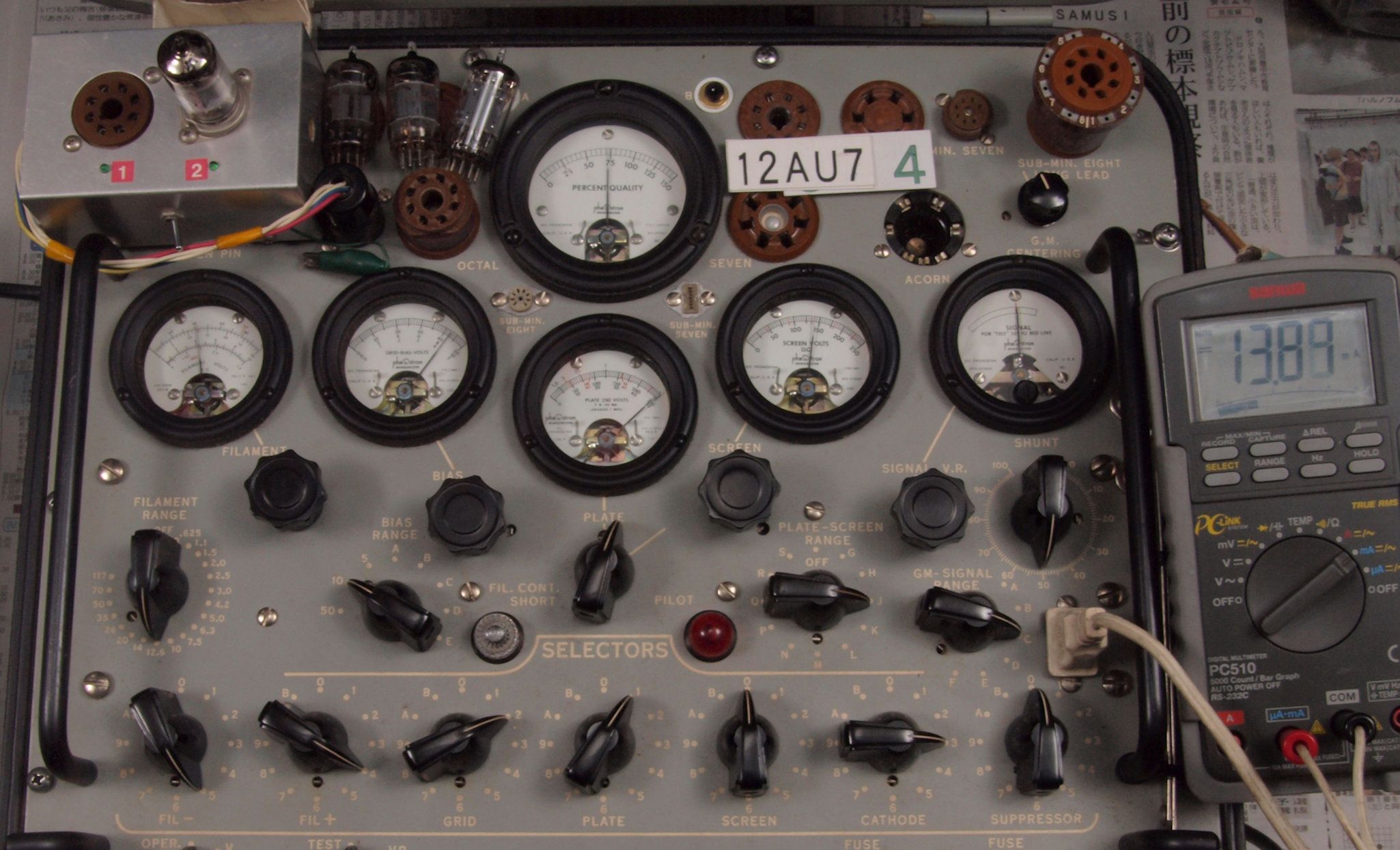 U. TubeTester HickokTV−2B/Uによる付属真空管測定。