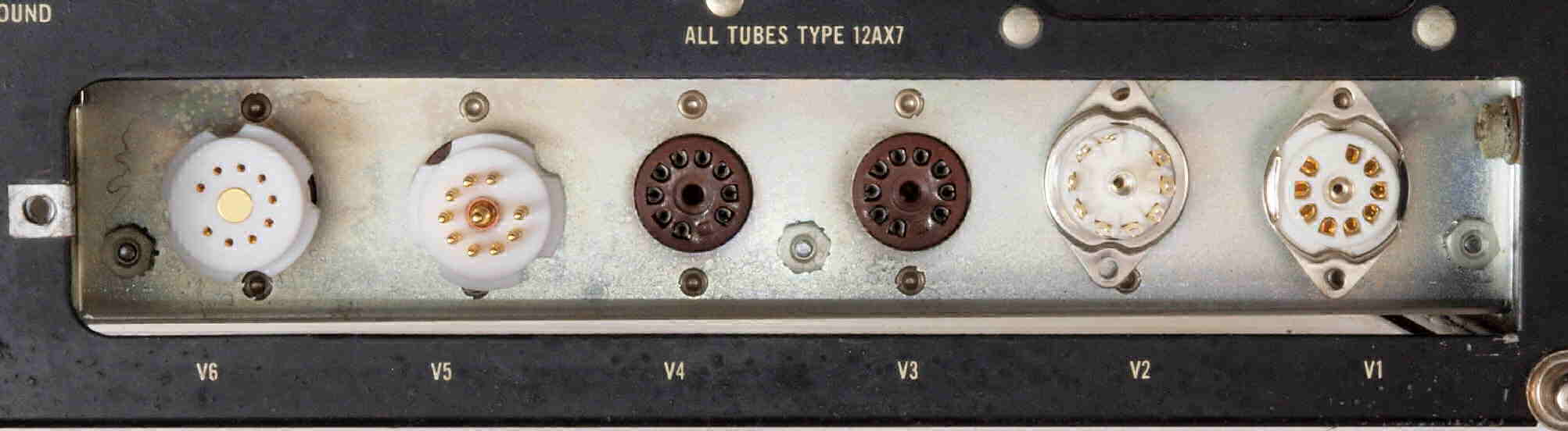 A81. 点検中 付属真空管 ECC83。 右から1番目、2番目、、、、6番目。