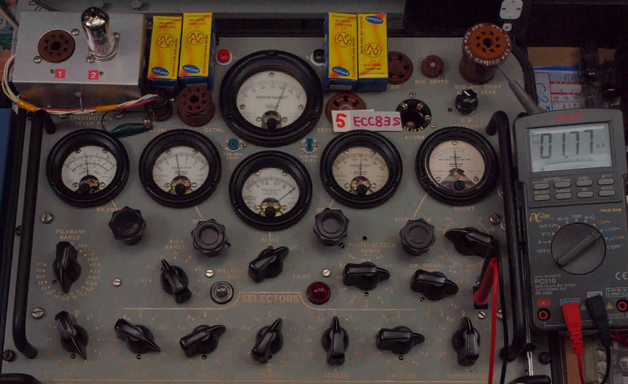 購入5本目 ECC83 ユニット1。 Gm測定=2100μmho、IP=1.77mA。