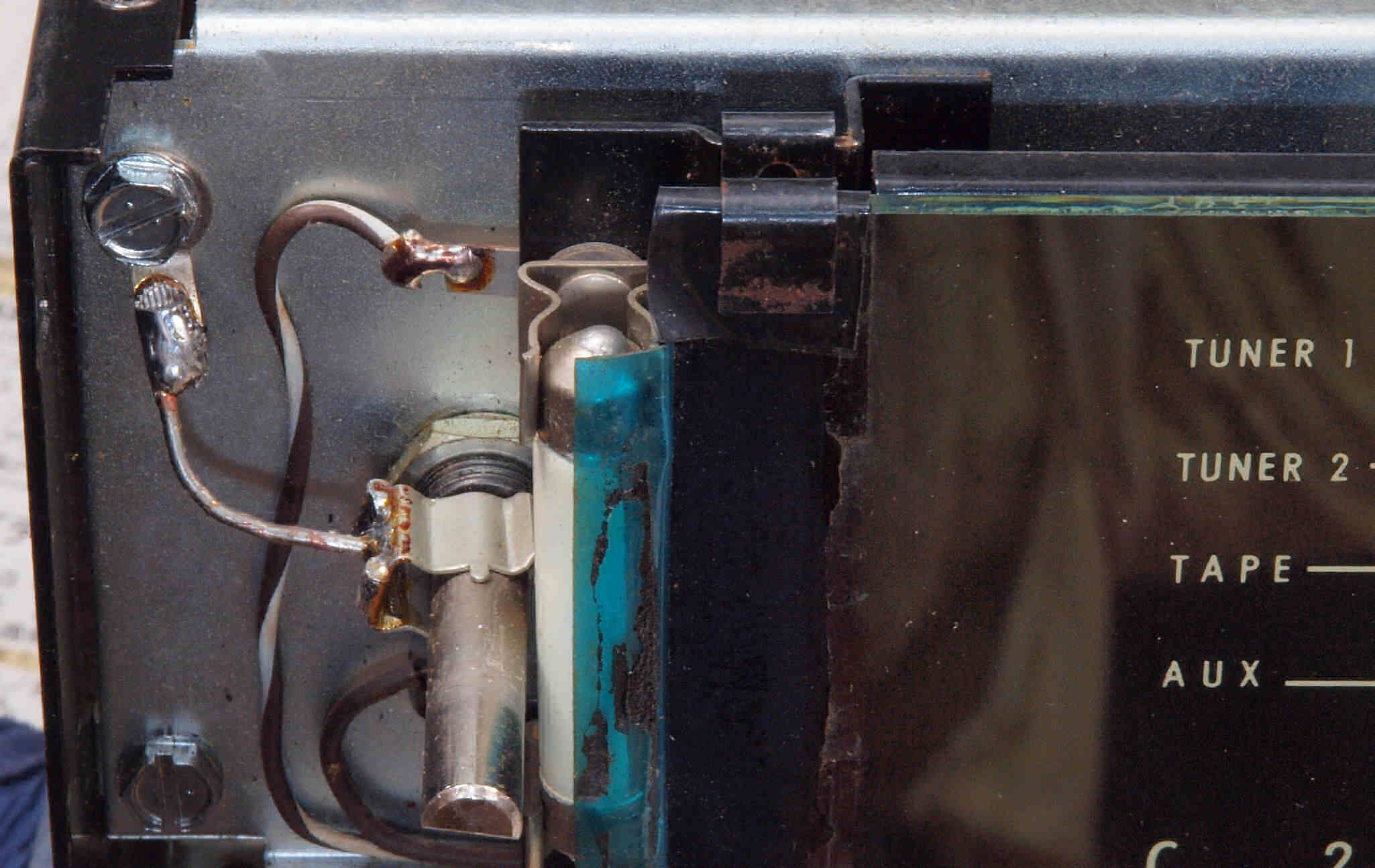 C24. 修理前 真空管ソケット、裏から見る