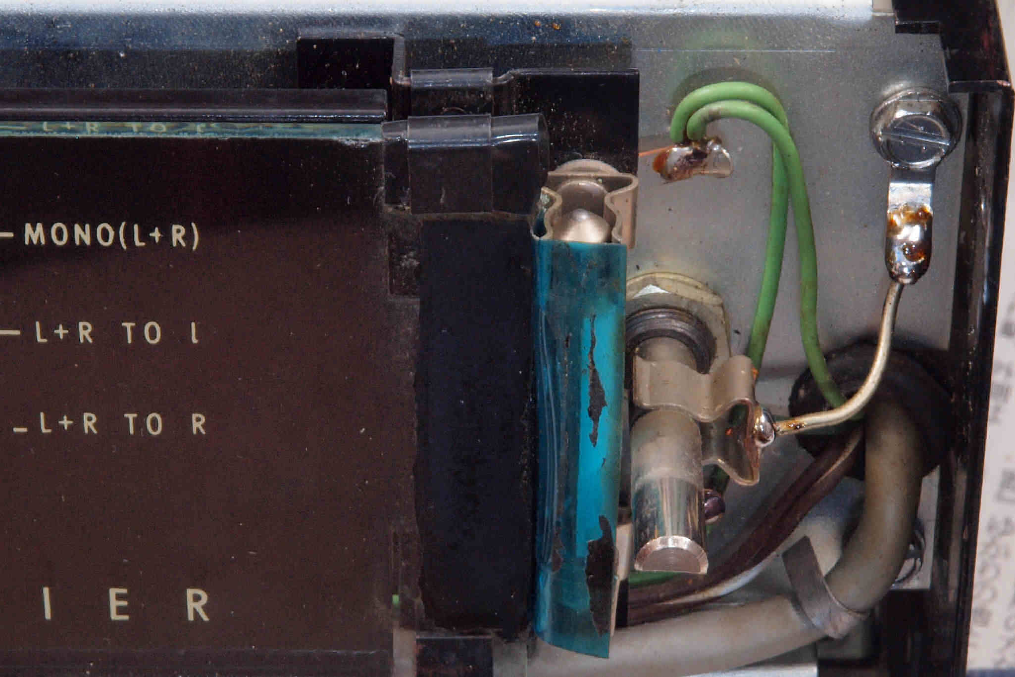 C73. 修理前 低レベル入力RCA端子郡裏。