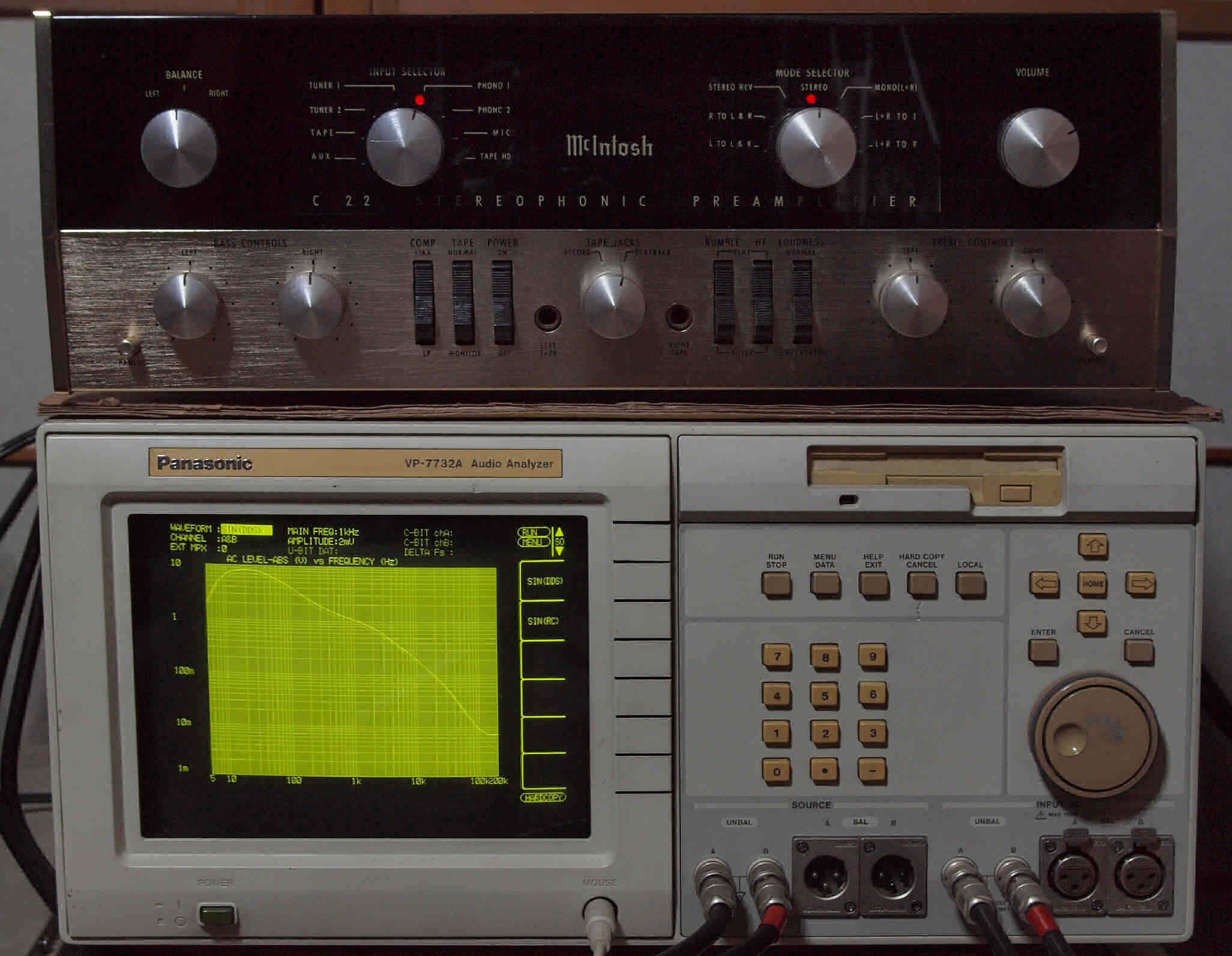 F0. 下のオーディオアナライザーVP−7732Aで自動測定。