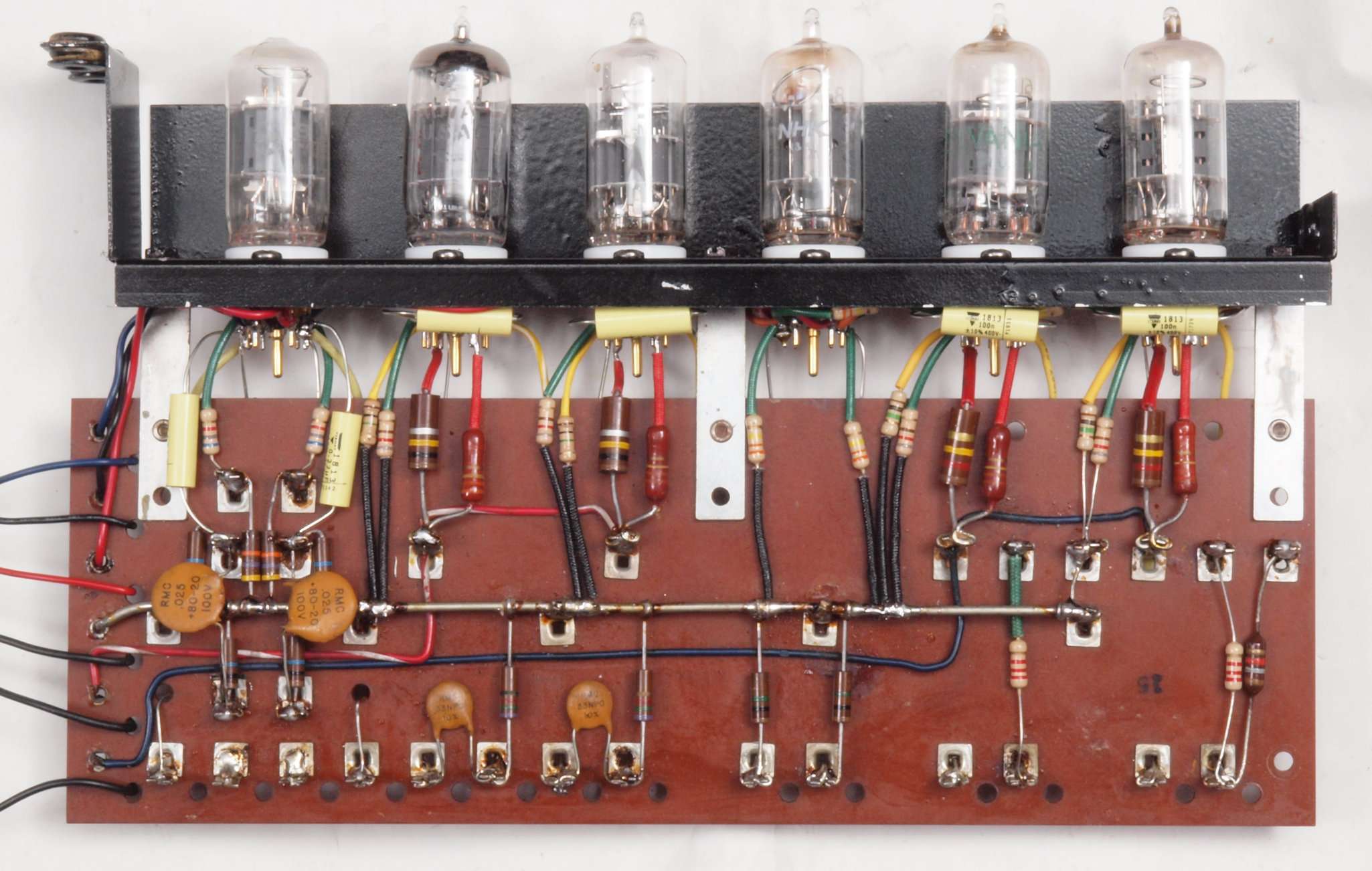 A91. 点検中 付属真空管 ナショナル12AX7。 右から1番目、2番目、、、、6番目。
