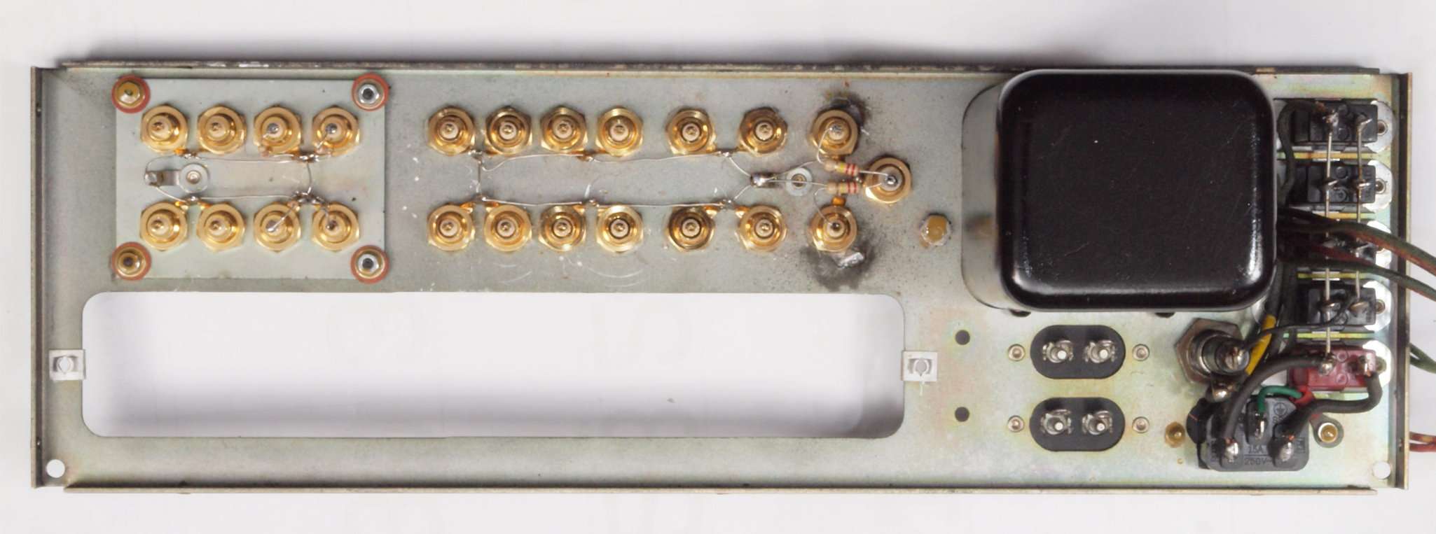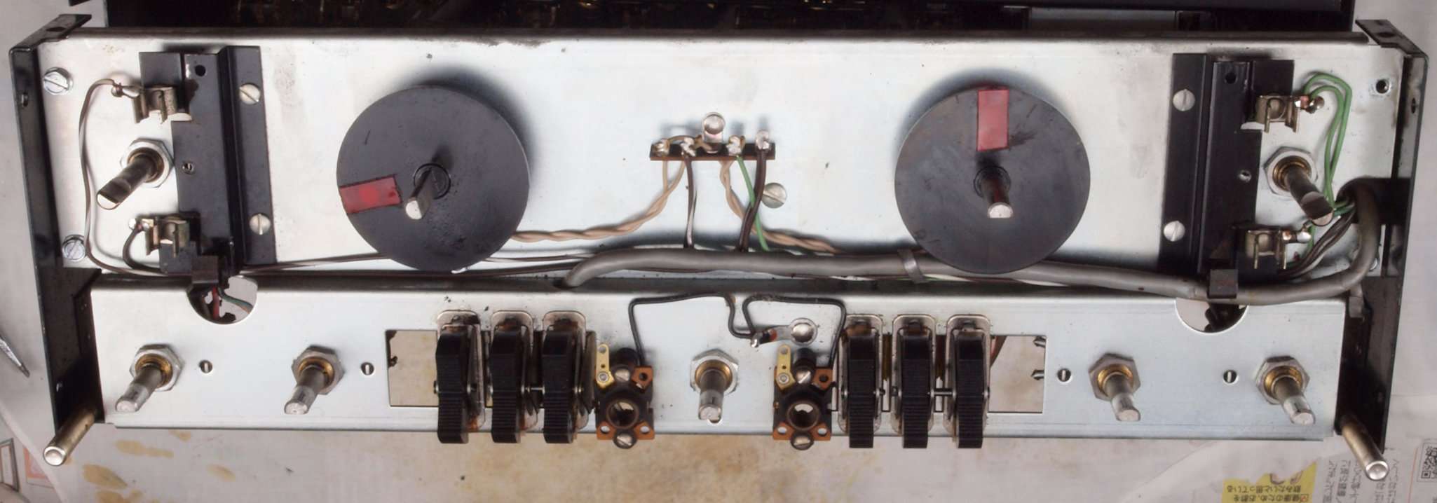 C12. 修理中 真空管基板、電源シャシ、前パネルを外して修理する。 下から見る。
