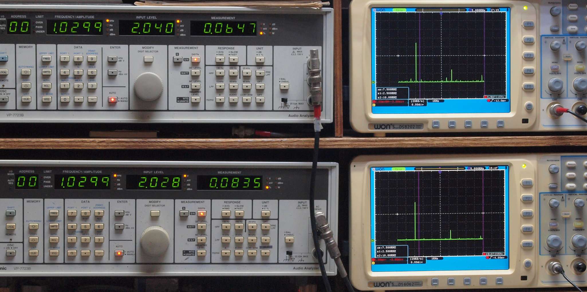 よって、ダイアル設定出力レベルより低くなります。測定機器の仕様や整備の様子はこちら、「VP−7723B」「VP−7201A」。 FFT画面の見方はこちら。