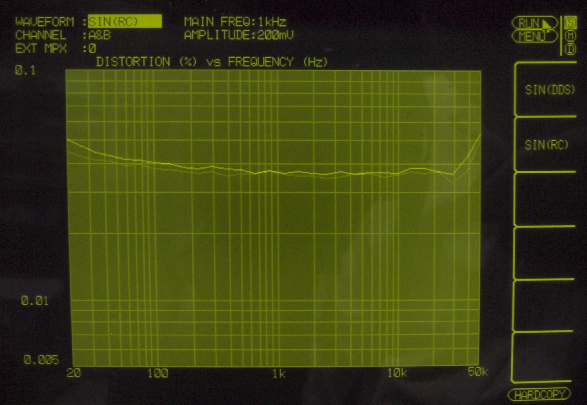 E37. MM 20kHz入力、R側出力電圧=2V、 0.229%歪み。