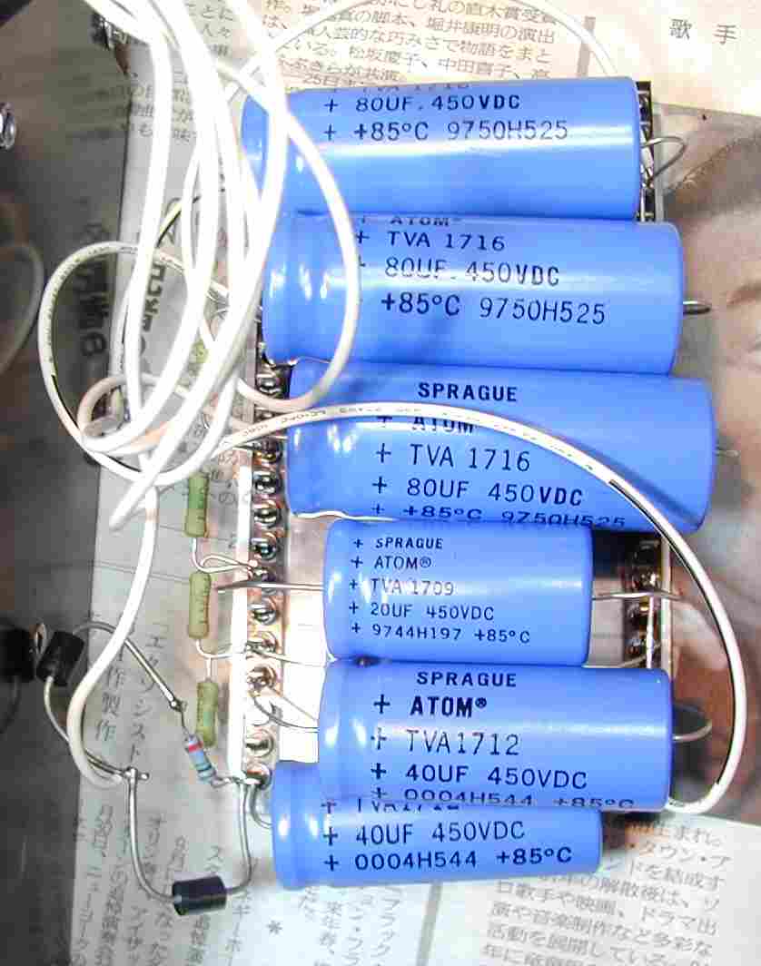 | 5. 時代の進歩は凄まじく、取り付けコンデンサー=150μ、上の古いでかいの=80μ。 | ||||||||||||||||||||||||||||||
