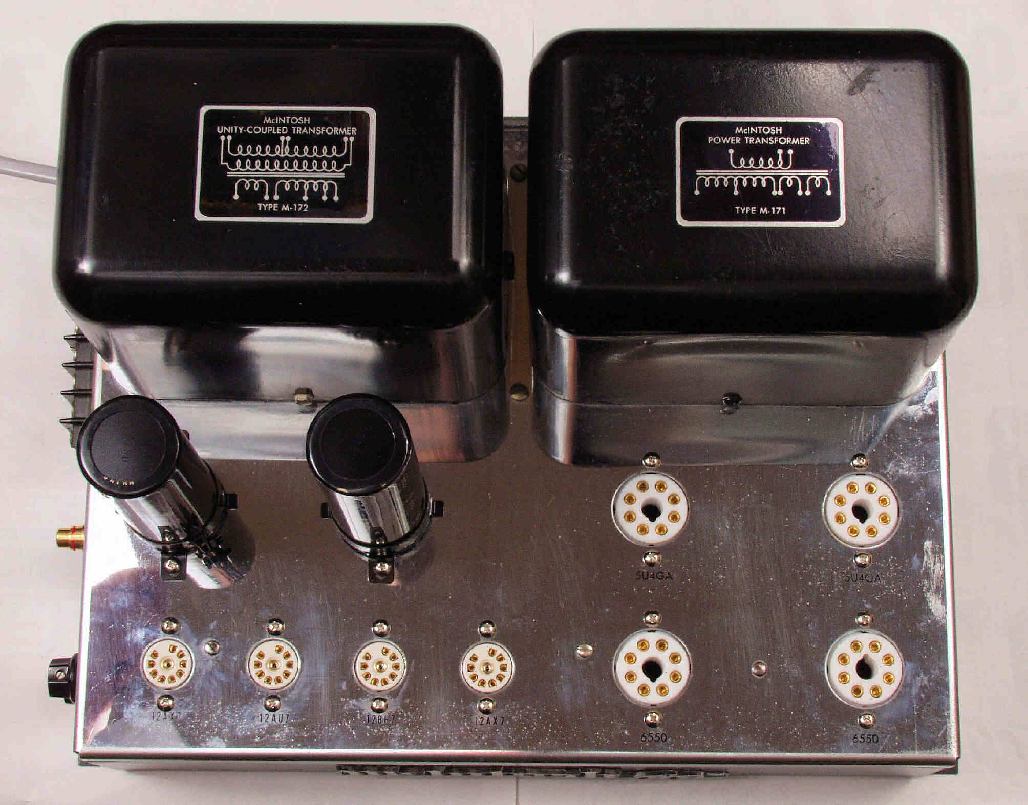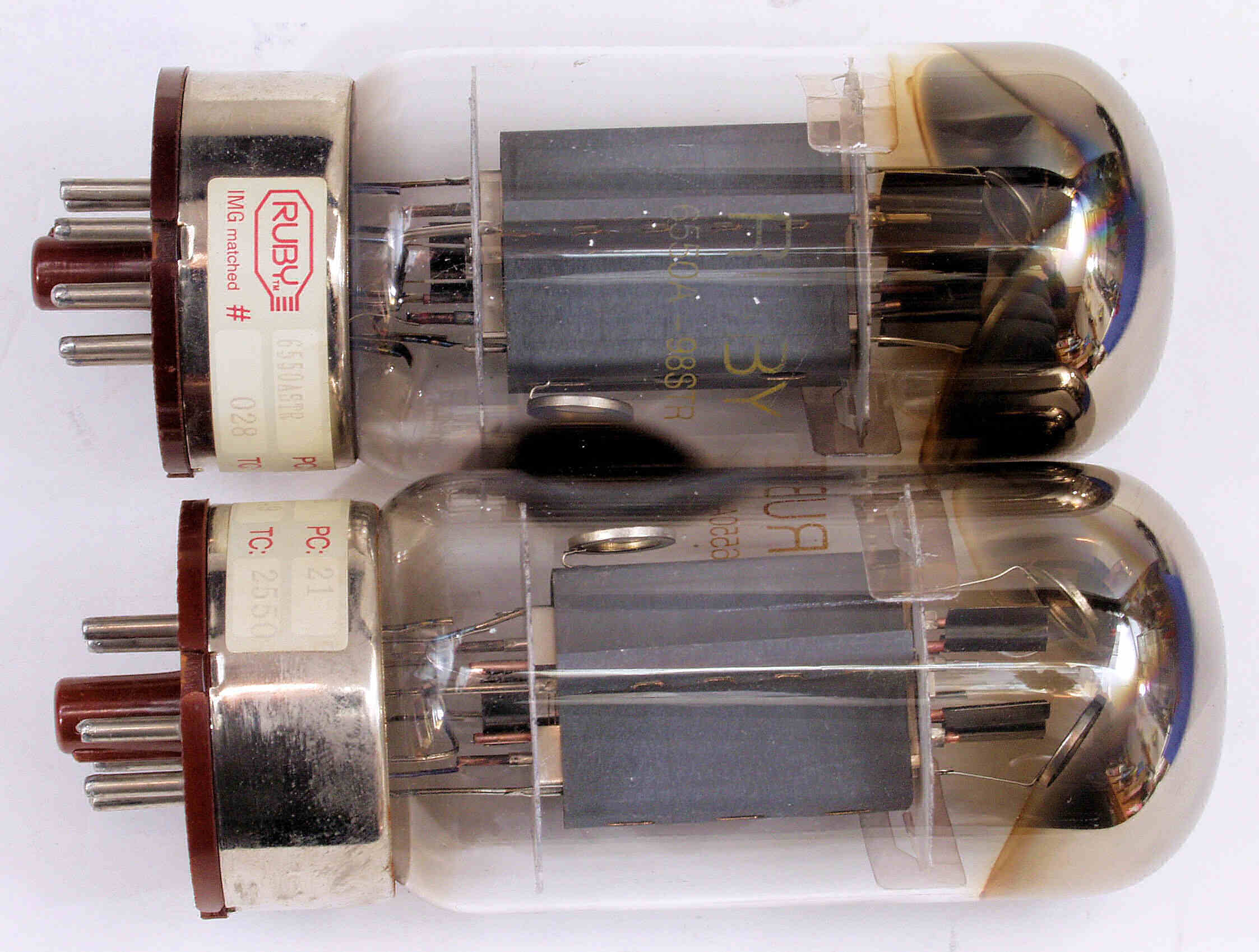 | U6. 付属真空管「6550」.上から1,2本目。 真空管ハンドブック(規格表)の、 相互コンダクタンス=11500μmho「Ep=250V、Esg=250V、Eg1=−15V、Ip=140mA」 1960/1962/1964/1966ナショナル真空管ハンドブック、1995オーディオ用真空管マニアル、60/62/69東芝電子管ハンドブック、1962日立電子管ハンドブック、1965/1971全日本真空管マニュアル、RC15/19/26/27/28/29/30 Receiving Tube Manual、1966/実用真空管ハンドブック、1995世界の真空管カタログより。 |