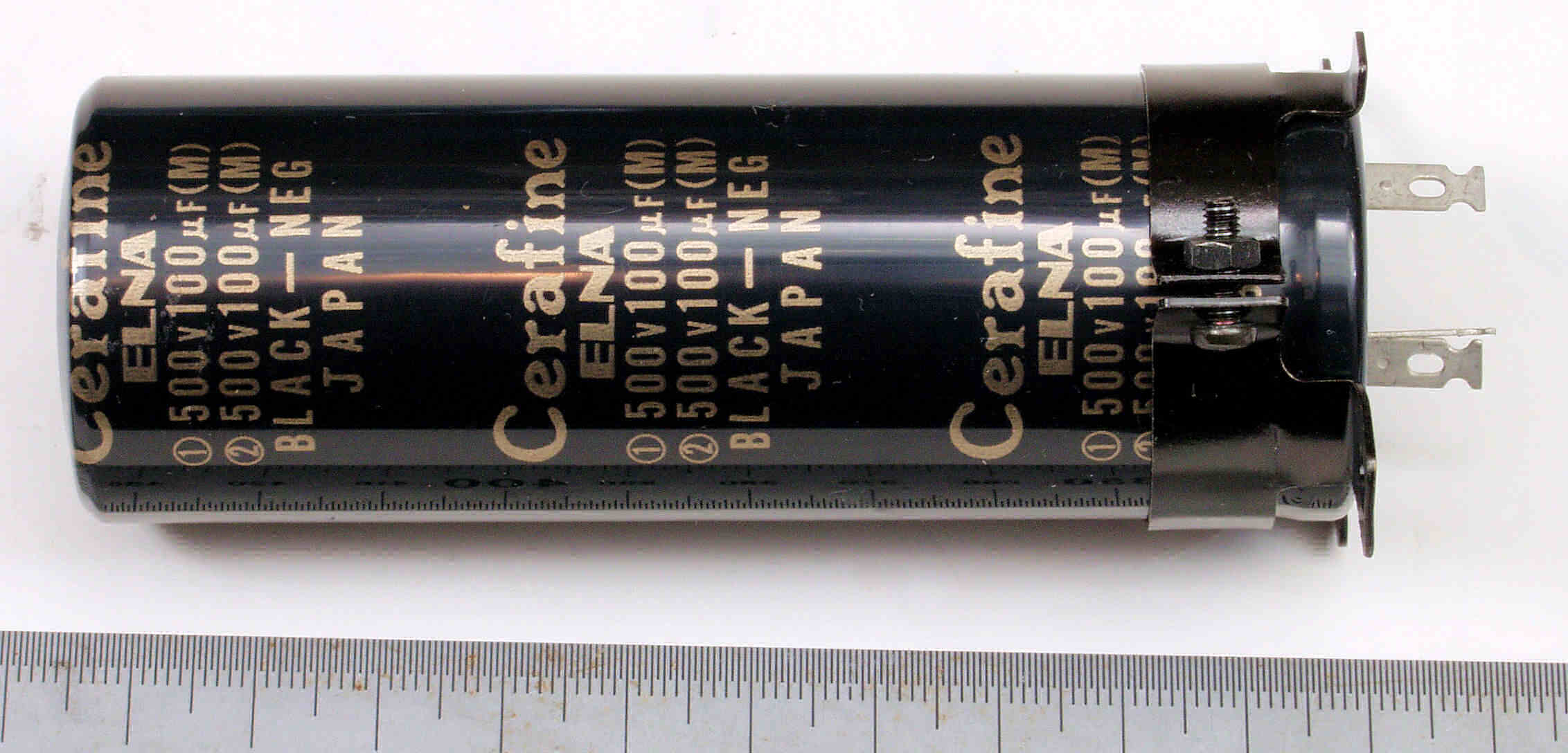 | A52. 点検中 交換する、ブロック電解コンデンサー、2本使用する。 入手難な「ElNA Cerafine」。 |