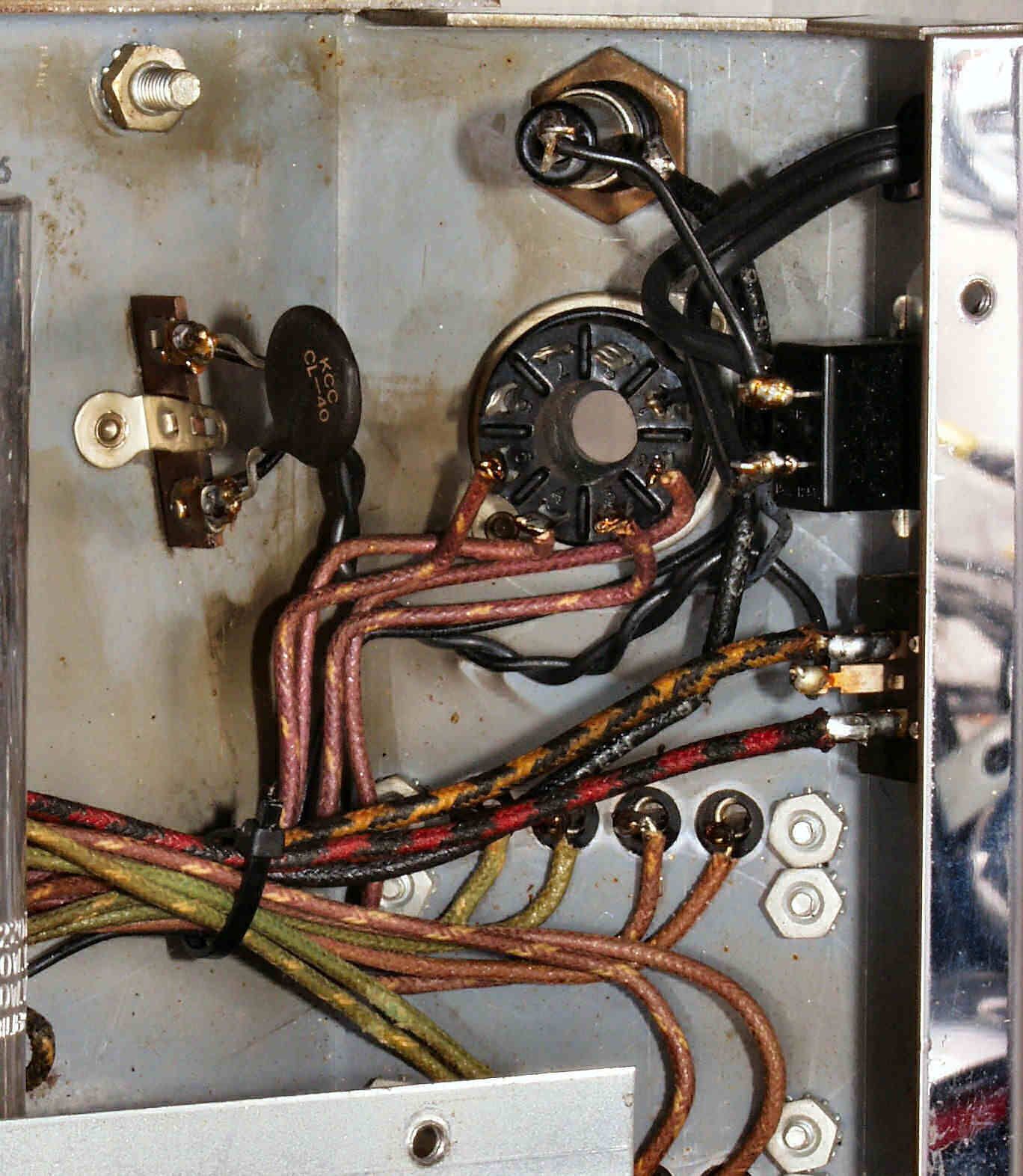 | C32. 修理後 V8−V9(6L6GC)ソケット周り配線、電解コンデンサー2個追加 | ||||||||||||||||||||||||