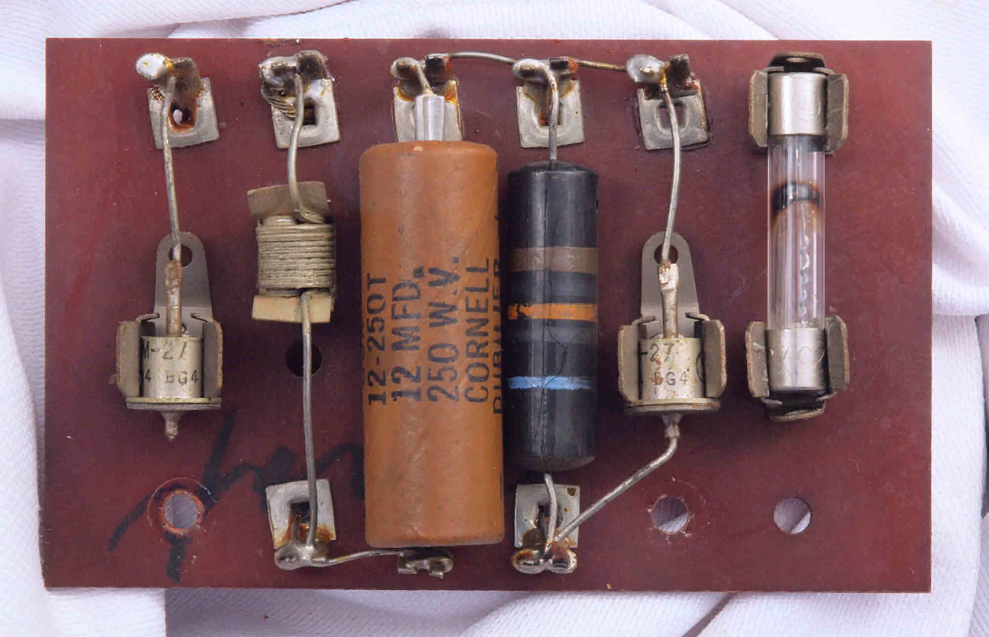 | C51. 修理前 ブロック電解コンデンサーとチョークトランスのシャーシ。 | ||||||||||||||||||||||||
