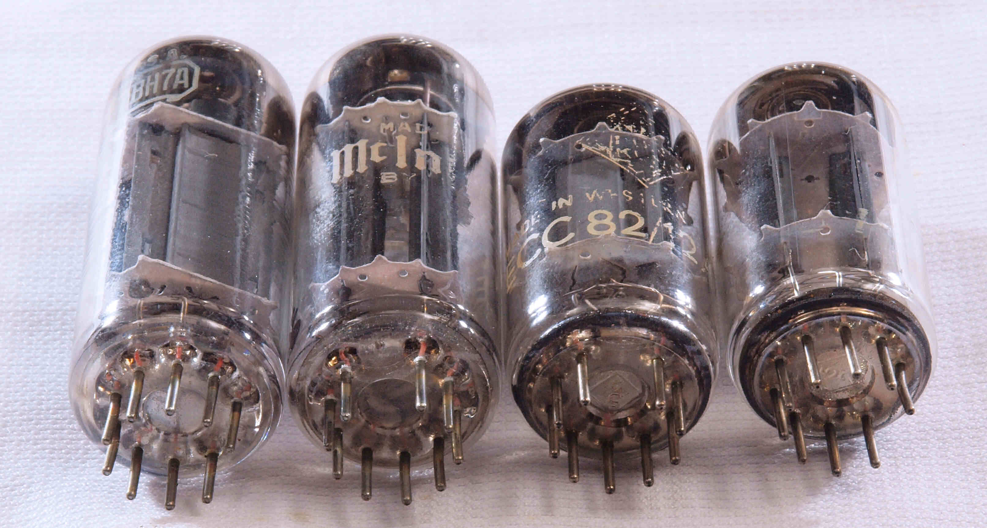 | 付属真空管、左から「12BH7」1本目、2本目。 「12AU7(ECC82)」1本目、2本目。 | ||||||||||||||||||||||||