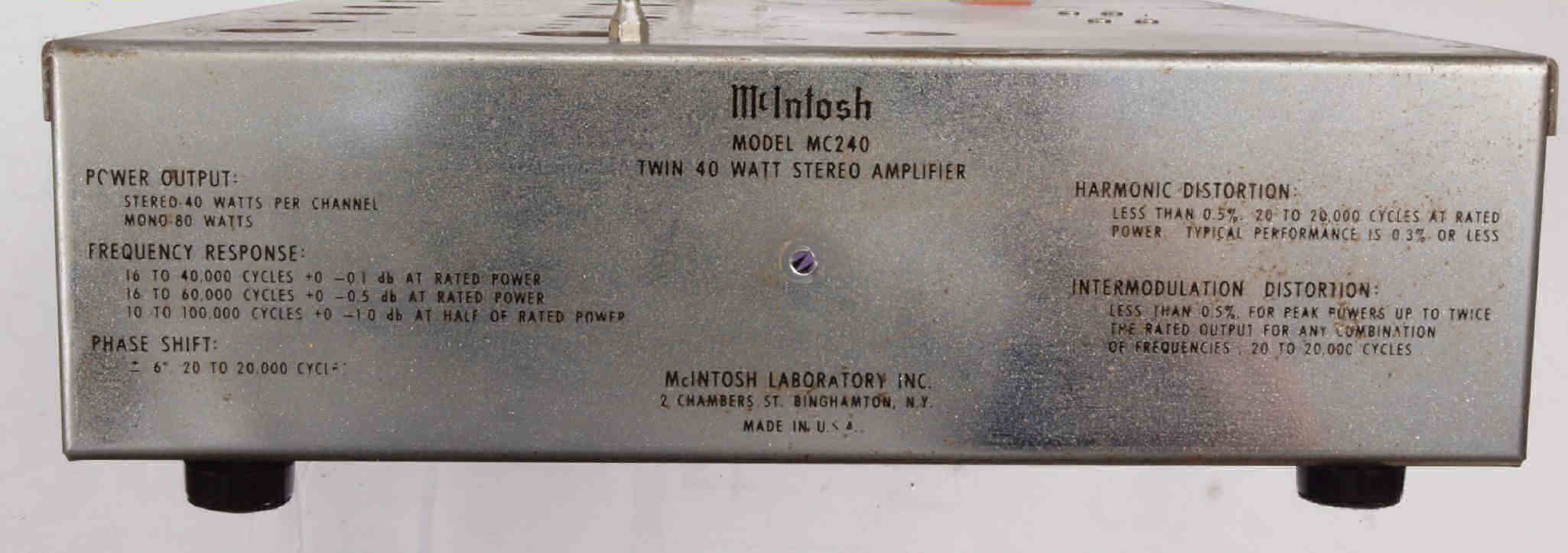 | S. Mcintosh MC240 の仕様(マニアル・カタログより) | ||||||||||||||||||||||||