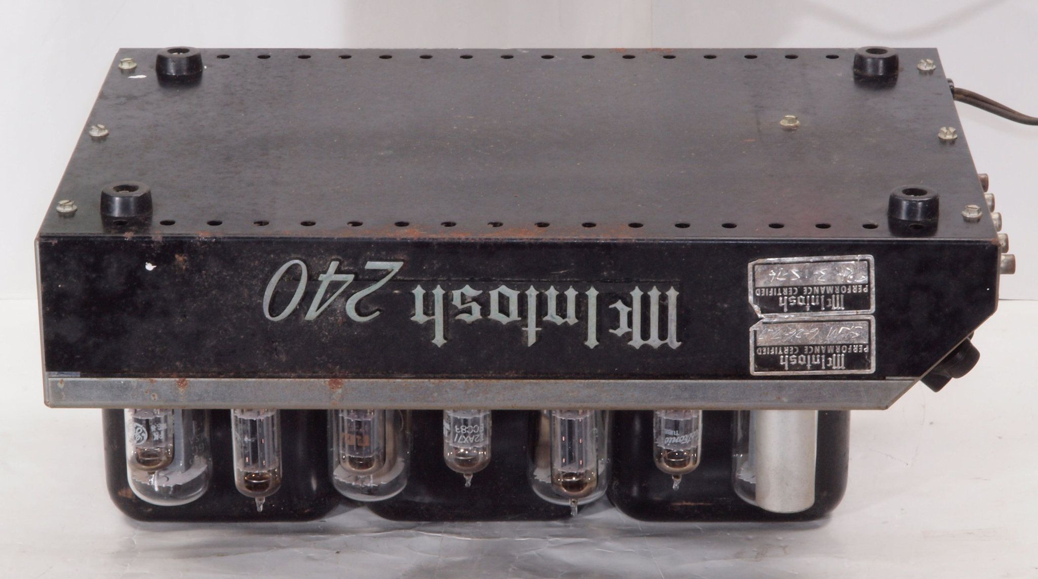 E. 調整・測定 F. 修理費 231,000円 オーバーホール修理。 真空管一式含む。 Y. ユーザー宅の設置状況 S. Mcintosh MC240 の仕様(マニアル・カタログより) このクラスの6L6GCは良質な物を選択すること。 又、前段の12AX7/12BH7と直結なので、此方も同様の配慮が必要。 |