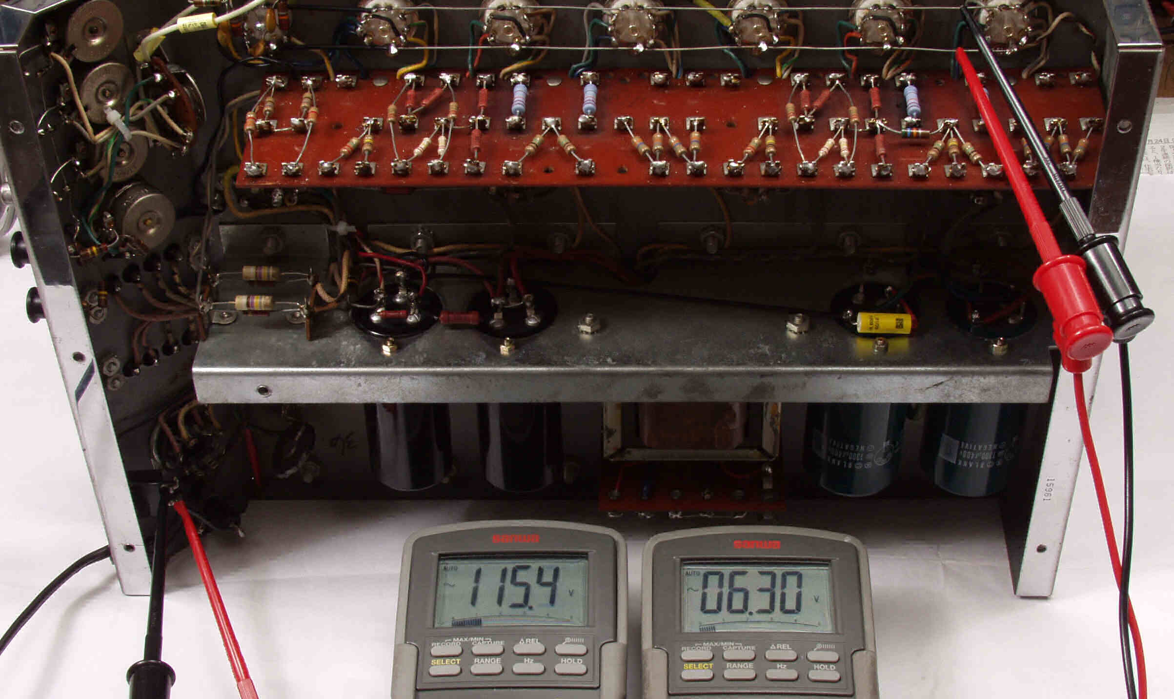 | A42. 点検中 電源電圧=115V ヒーター電圧=6.3Vの測定 このAMPが115V仕様確定です | ||||||||||||||||||||||||