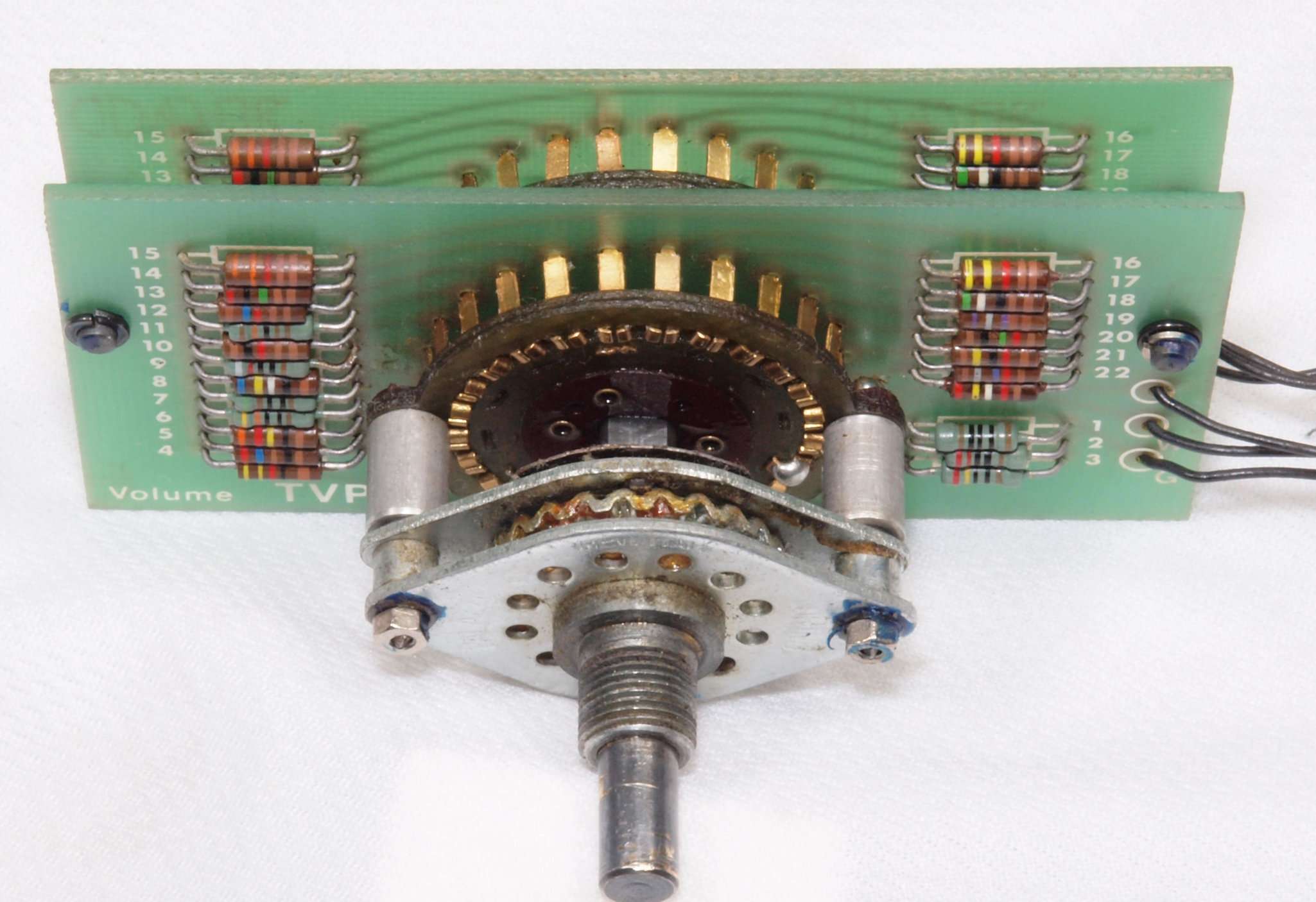 両面基盤を使用した立派な物、 真ん中=メインVRは抵抗切り替え式、切り替えSWは金メッキ使用。