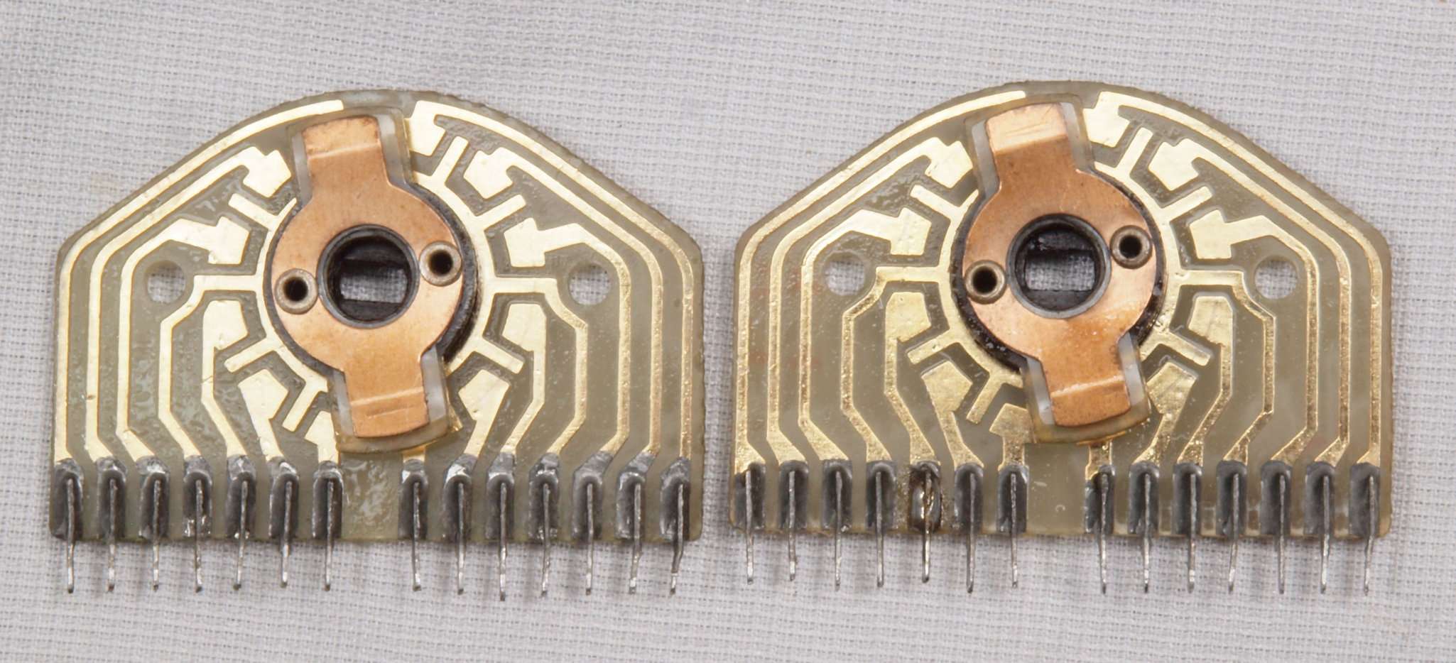 H103. 修理(清掃)後 各SW(VR)類を外した所、端子跡。