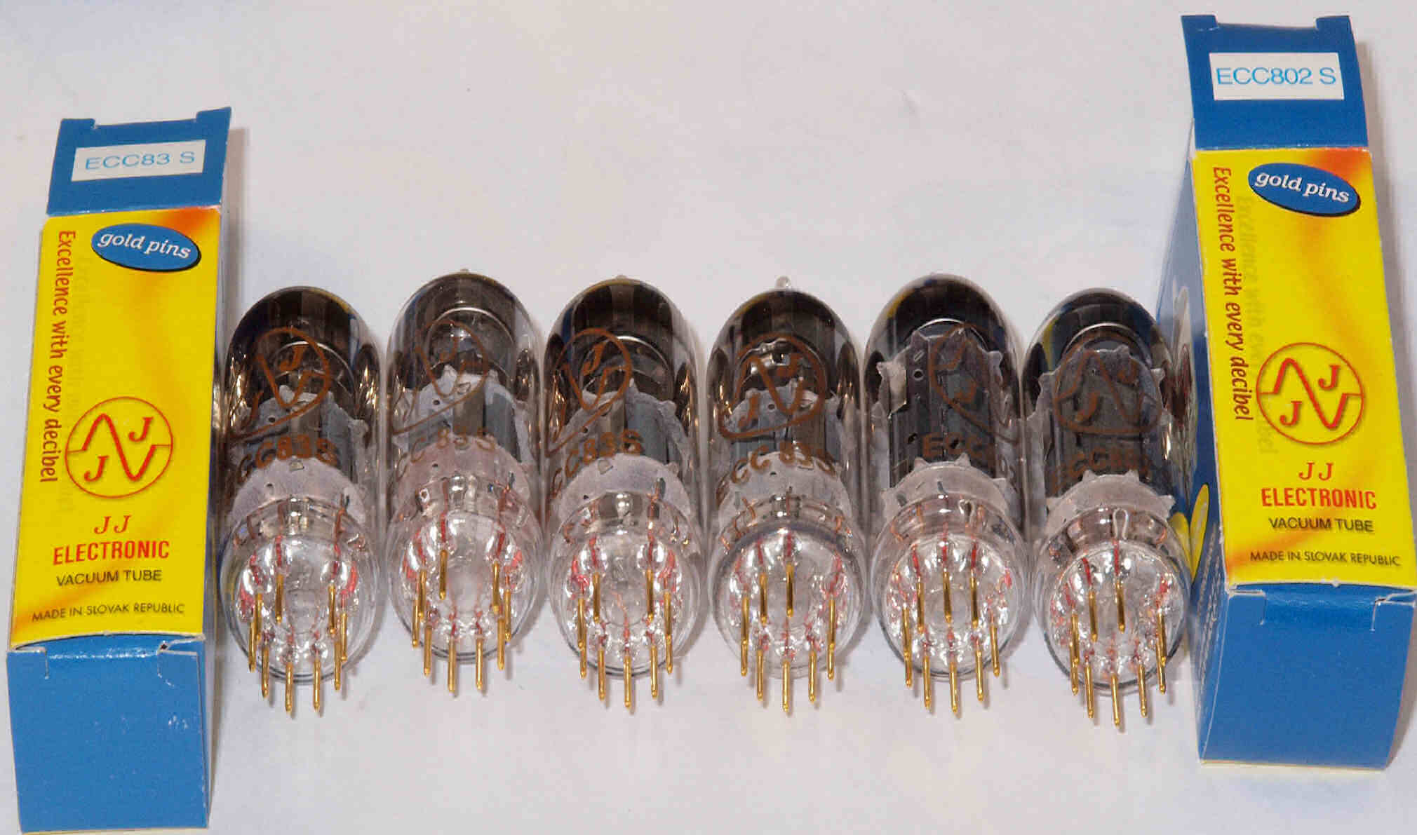 V0. 購入真空管「ECC83」=左から1本目、、、4本目。 ECC82=1本目、2本目。