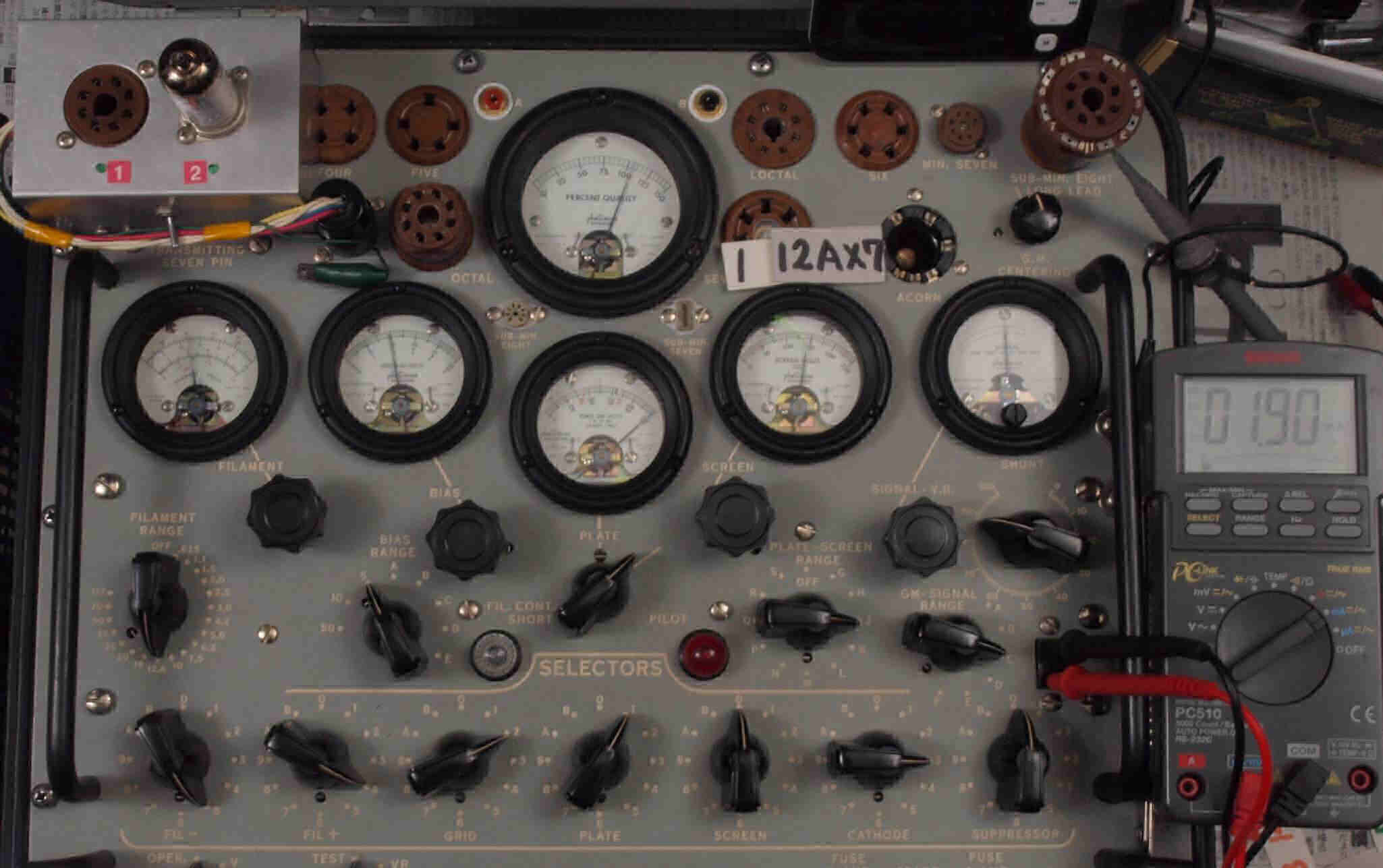 | U11. 付属「12AX7」 ユニット1。 Gm測定=2040μmho、IP=1.90mA。 Cレンジ=3000μmhoレンジでの測定、「Ep=250V、Eg1=−2V」 |