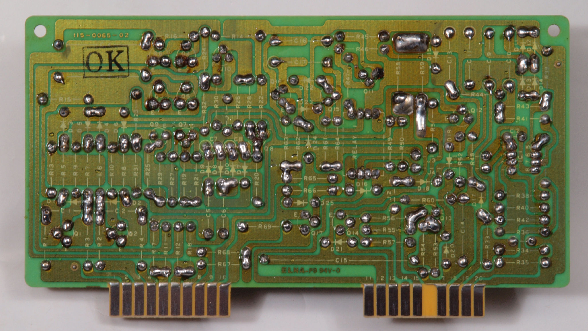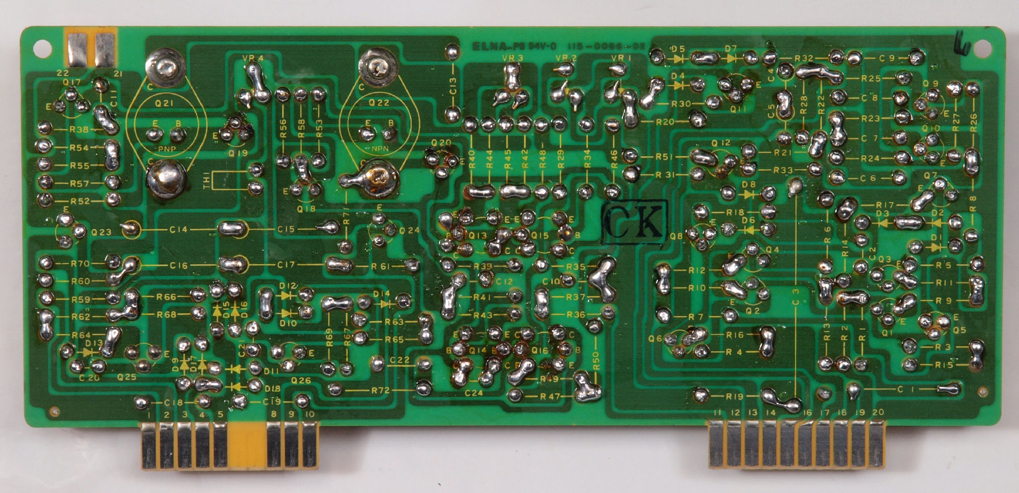 | C64. 修理(半田補正)後 定電圧基板裏。 半田を全部やり直す。 | ||||||||||||||||||||||||||||||||||||